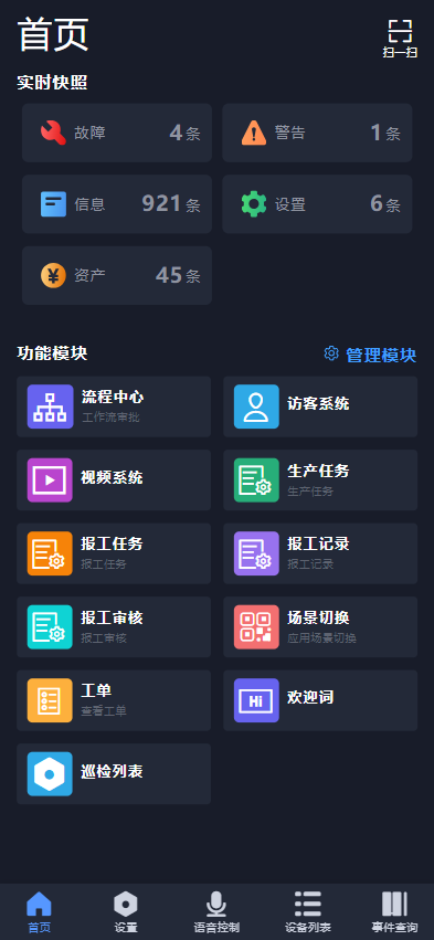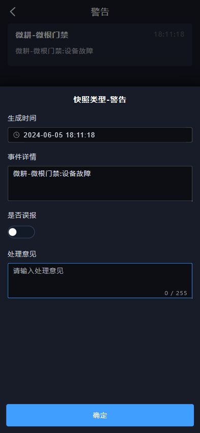 支持对故障、信息、设置及资产信息的确认。支持告警确认和测点误报。