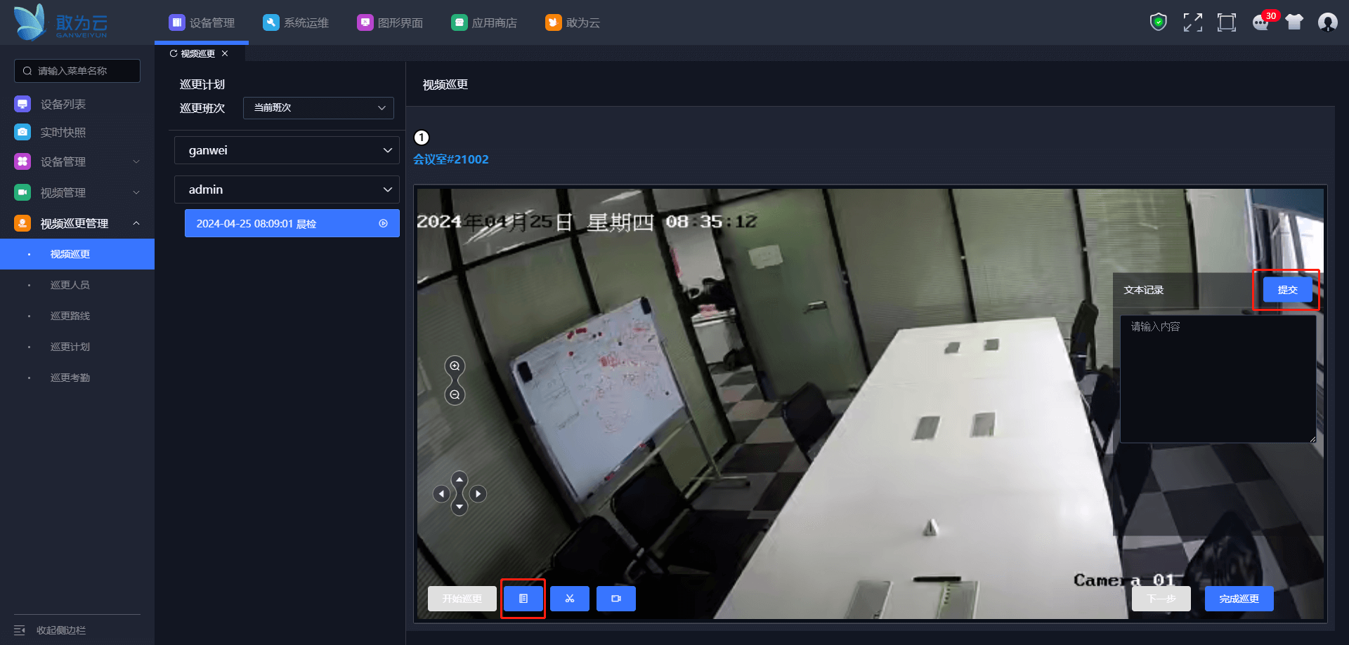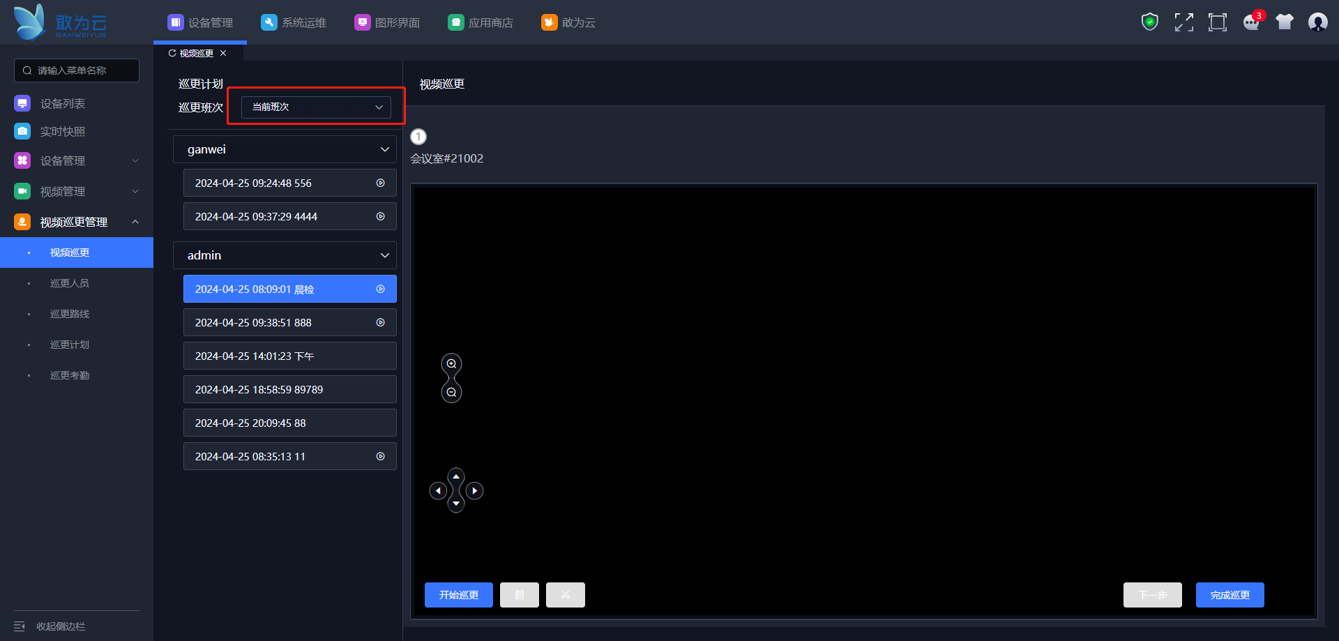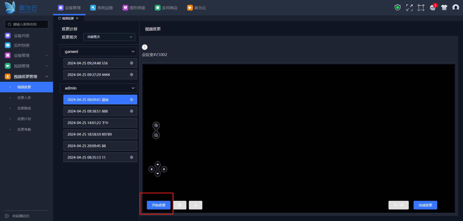 | 2 | 支持查看视频巡更 | 支持开始巡更。 支持截图。 支持视频控制。 支持下一步操作。 支持全屏显示。 支持记录巡更信息。 支持完成巡更。 |