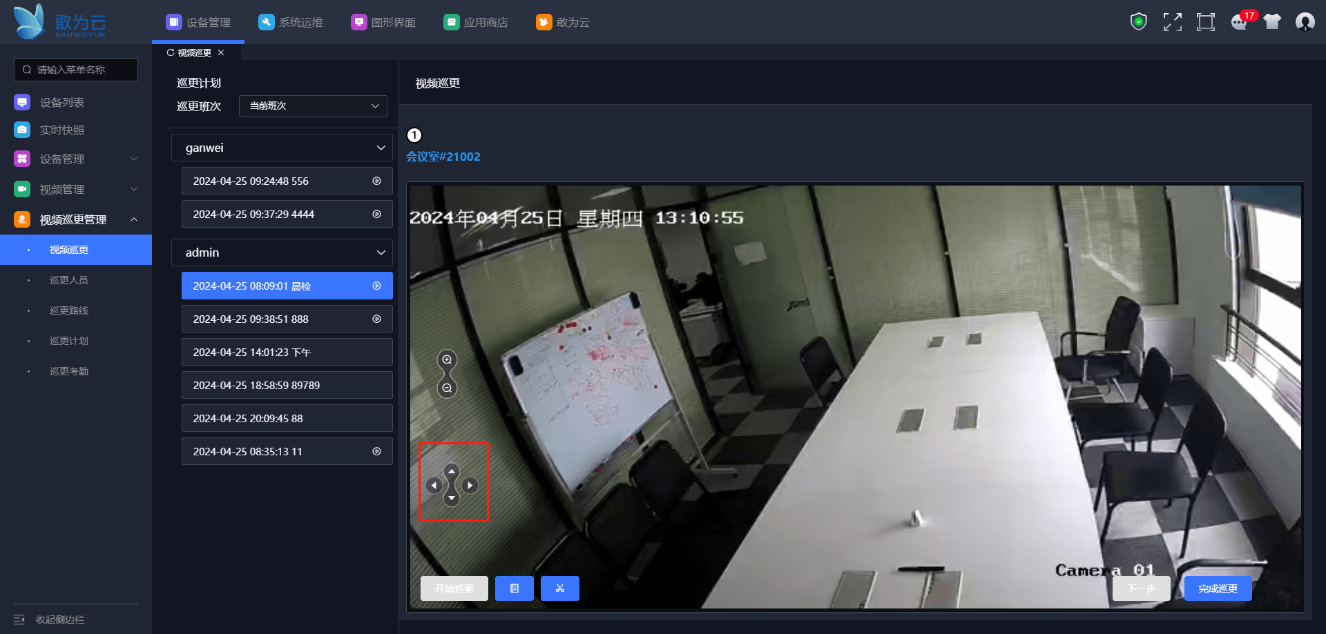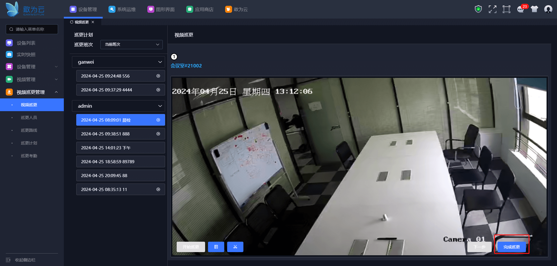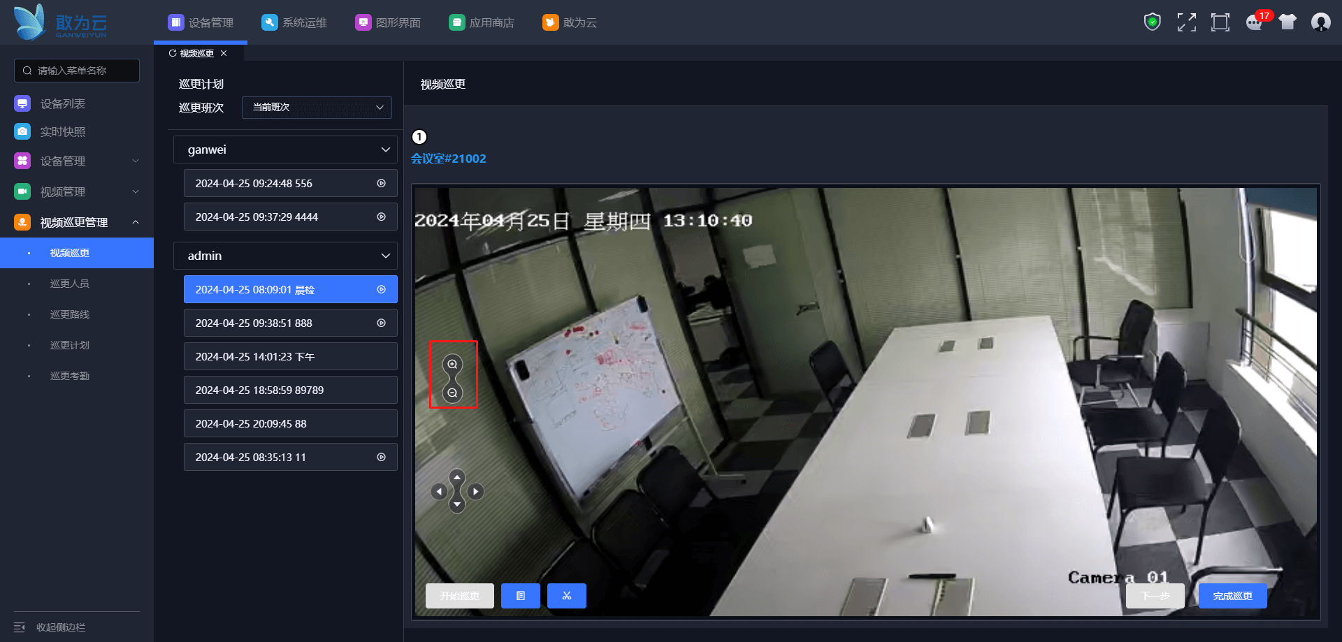 | 2 | 支持查看视频巡更 | 支持开始巡更。 支持截图。 支持视频控制。 支持下一步操作。 支持全屏显示。 支持记录巡更信息。 支持完成巡更。 |