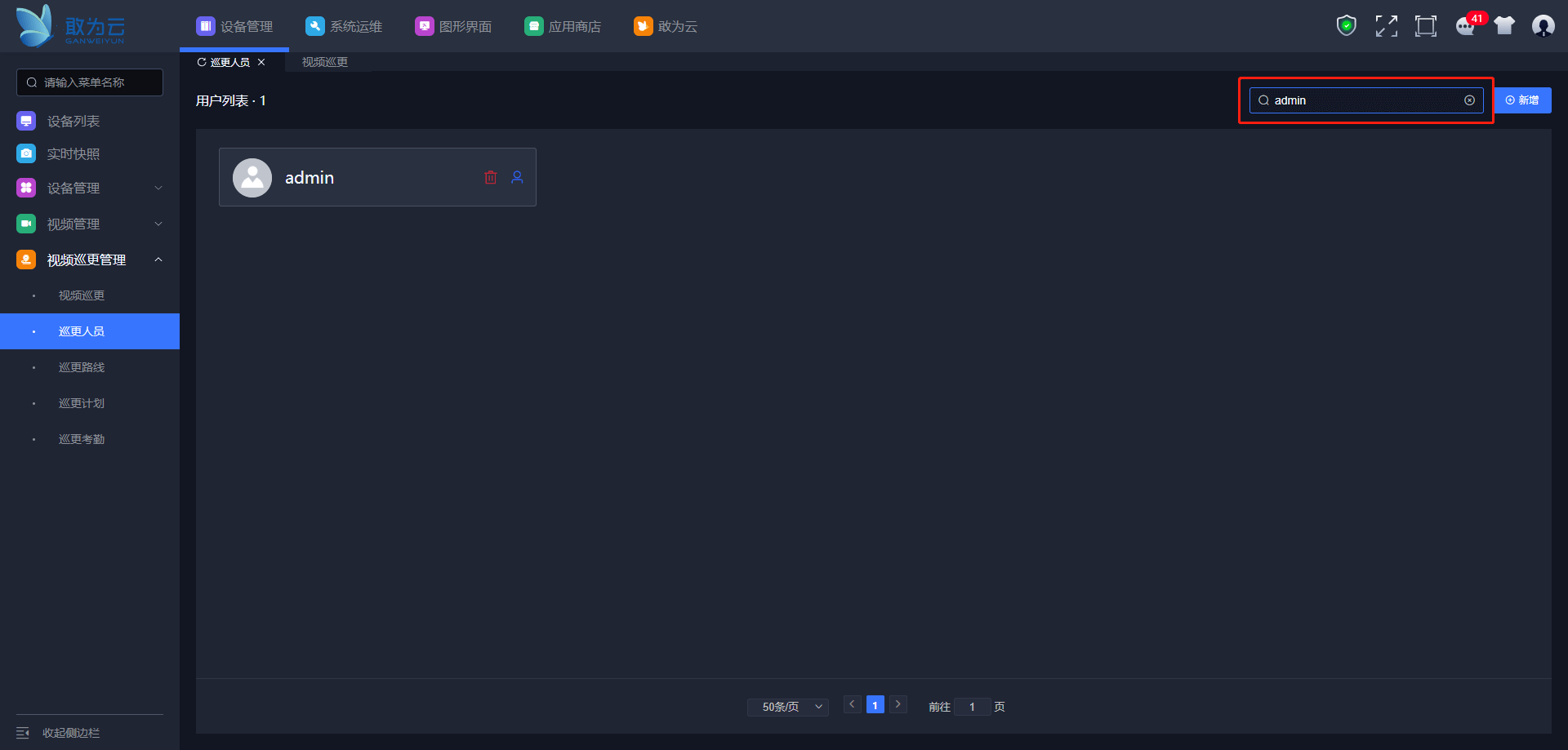 在查询处输入用户名称,回车,列表显示包含关键字的人员信息。