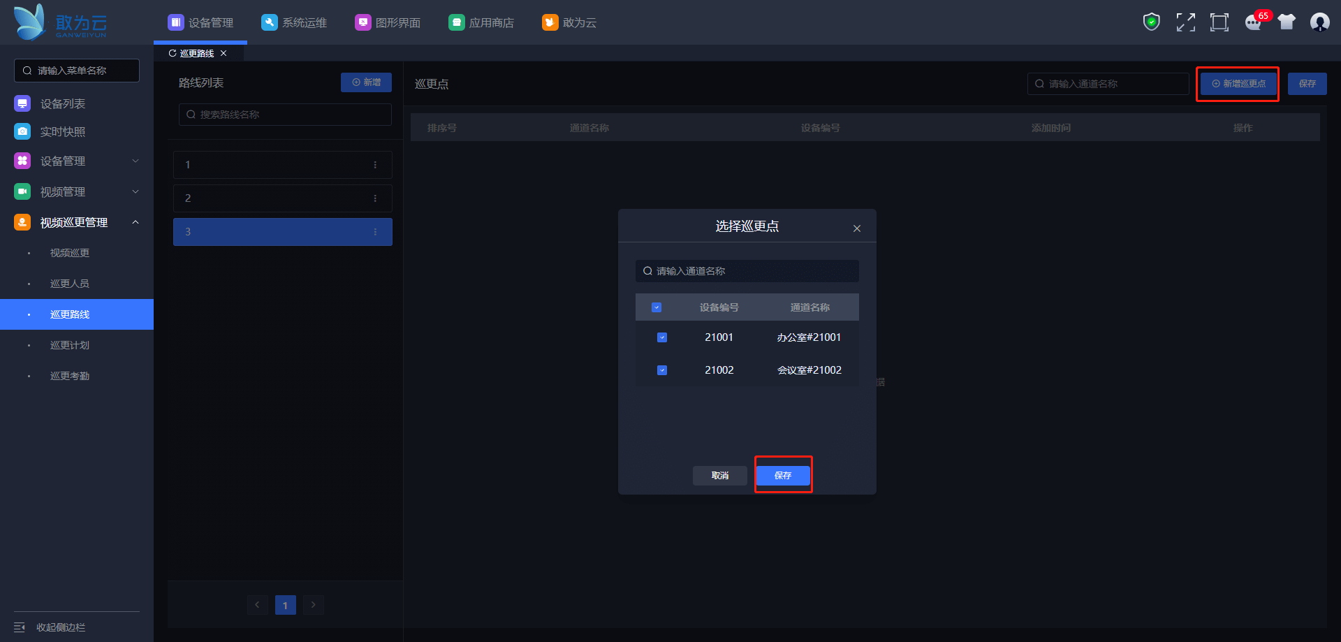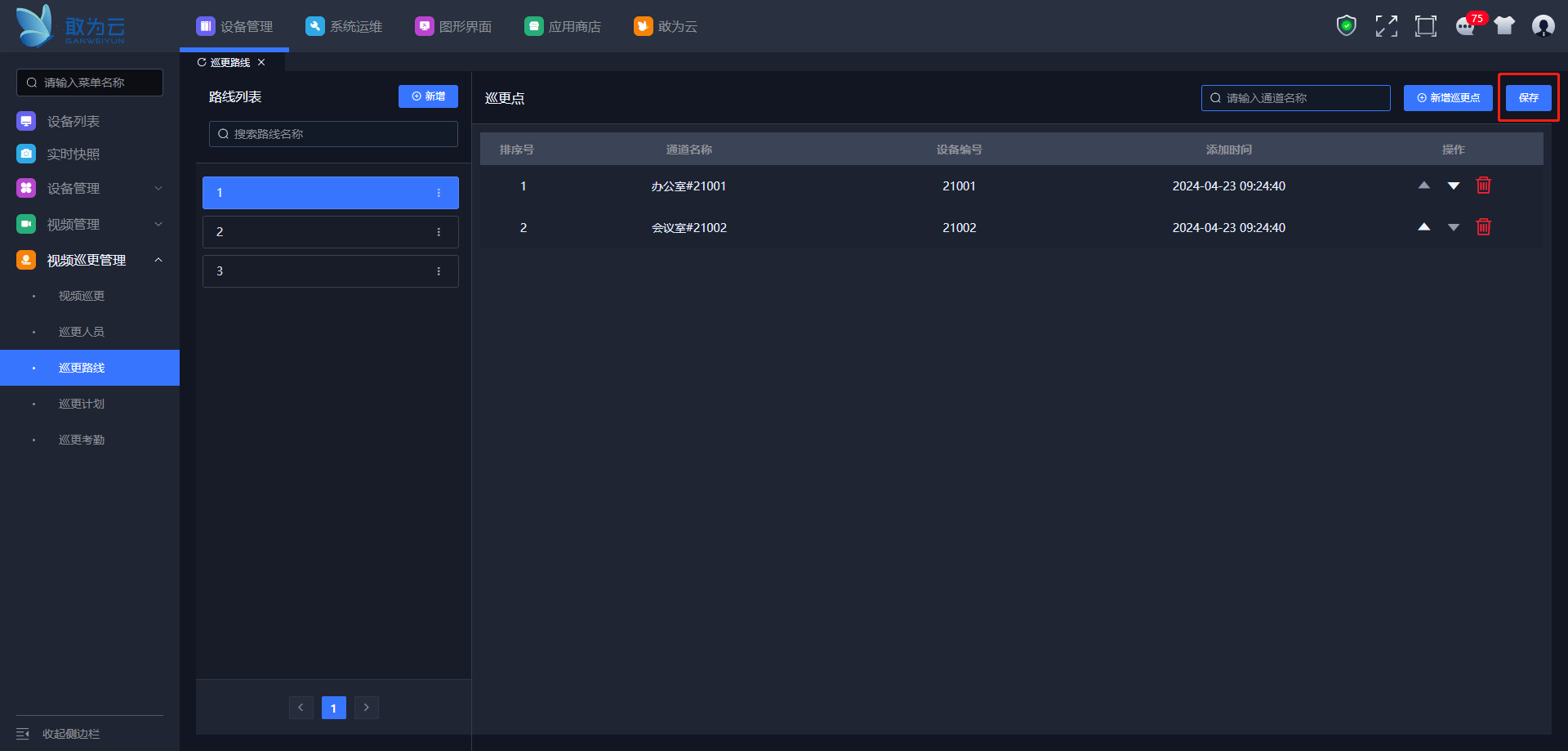 | 4 | 支持管理巡更路线 | 支持管理路线列表。 支持管理巡更点。 |