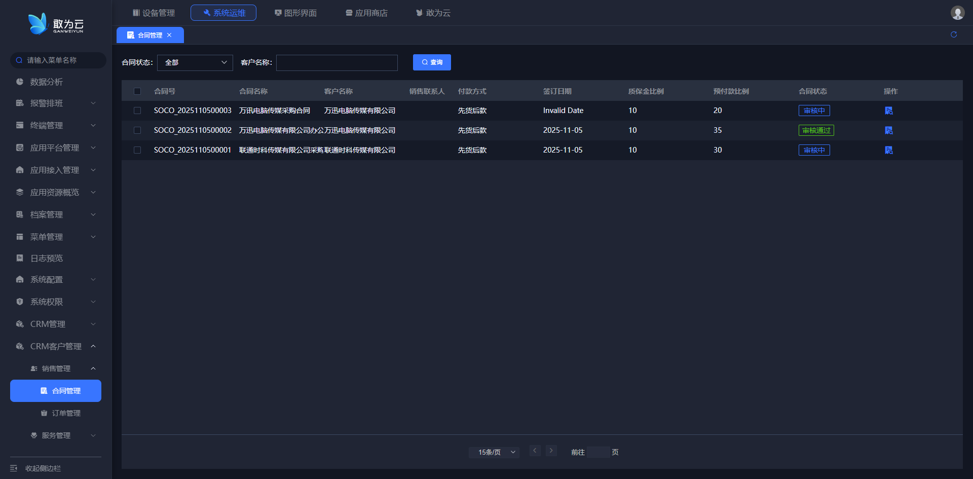 - 系统将列表显示所有符合条件的合同记录,并可查看其核心信息与状态。