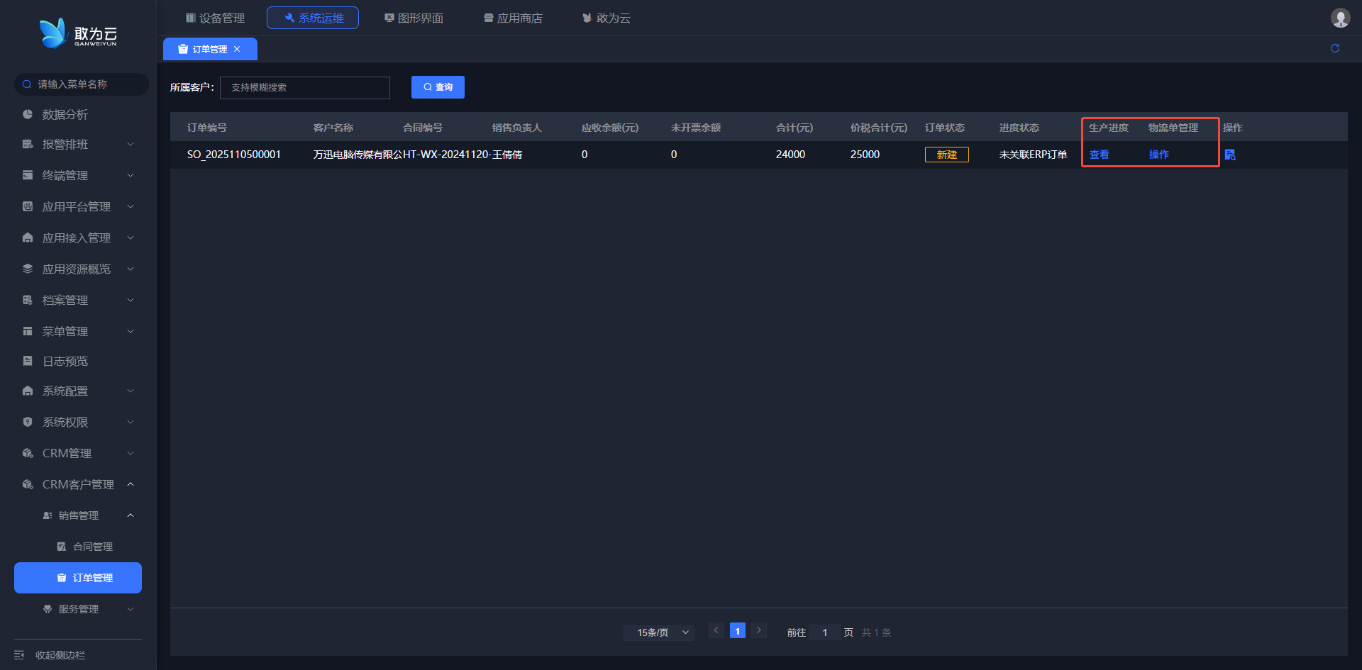 - 登录系统,进入 「CRM客户管理-订单管理」 页面;