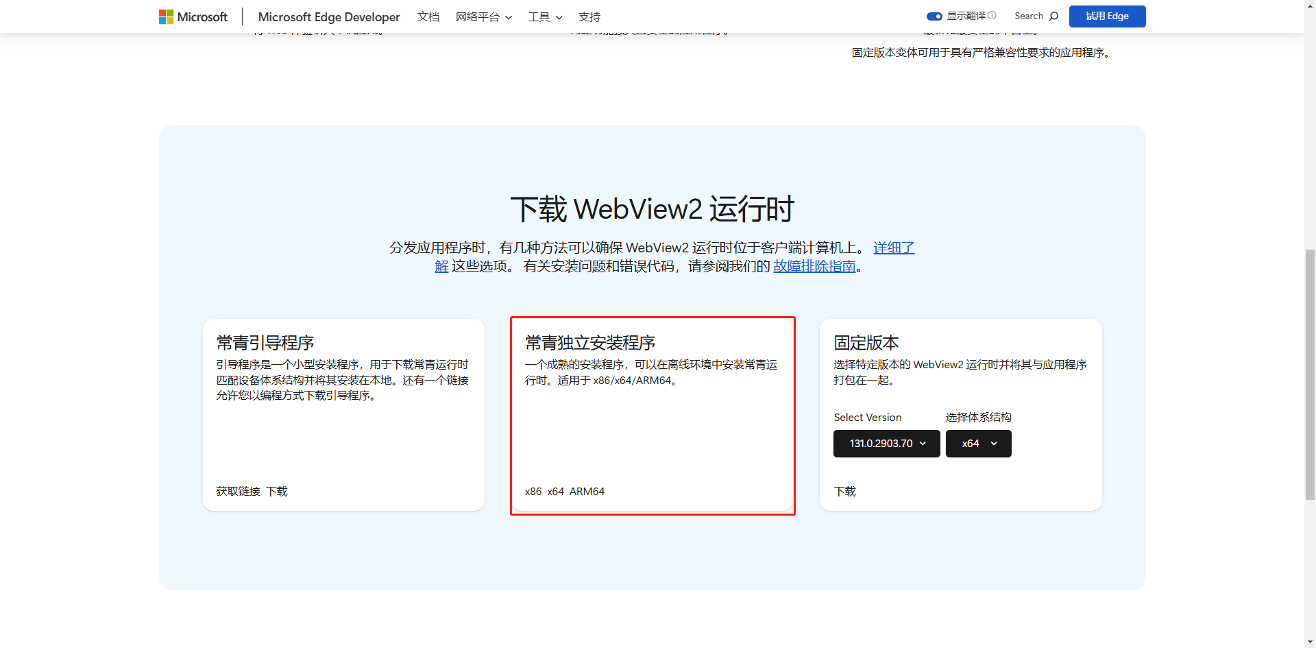 已安装Microsoft Edge 浏览器,并且C:\Program Files (x86)\Microsoft目录下存在EdgeWebView文件夹。 则无需安装安装Microsoft Edge 浏览器