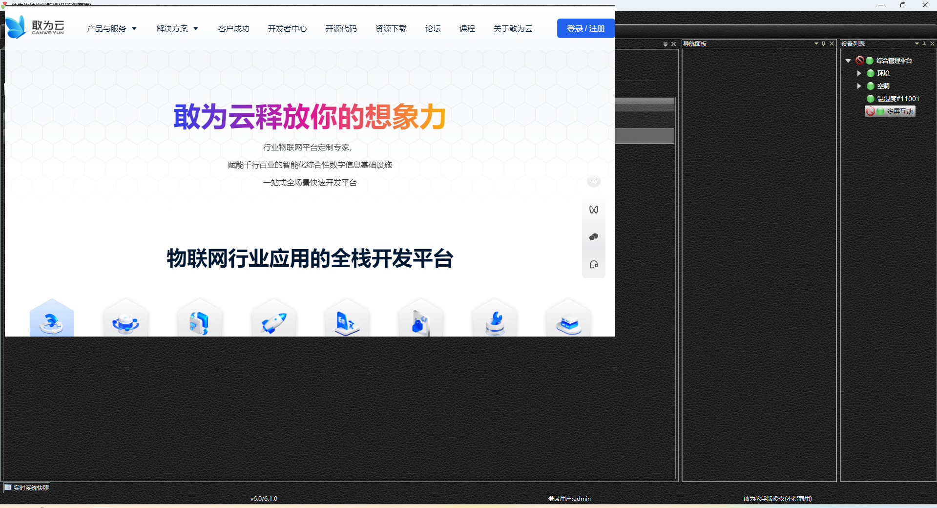 完成前面三个步骤的配置后,我们需要在工作站电脑安装 Desktop客户端安装(以下简称桌面版软件),安装完成后双击运行桌面版软件程序,输入IoTCenter服务端IP地址、账号、密码登陆桌面版软件。