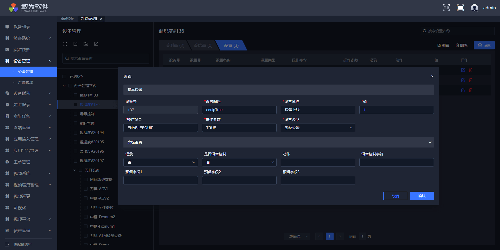 若要使设备再次上线,则可以按照以上步骤再次添加设置点,操作参数设置为"TRUE"即可。