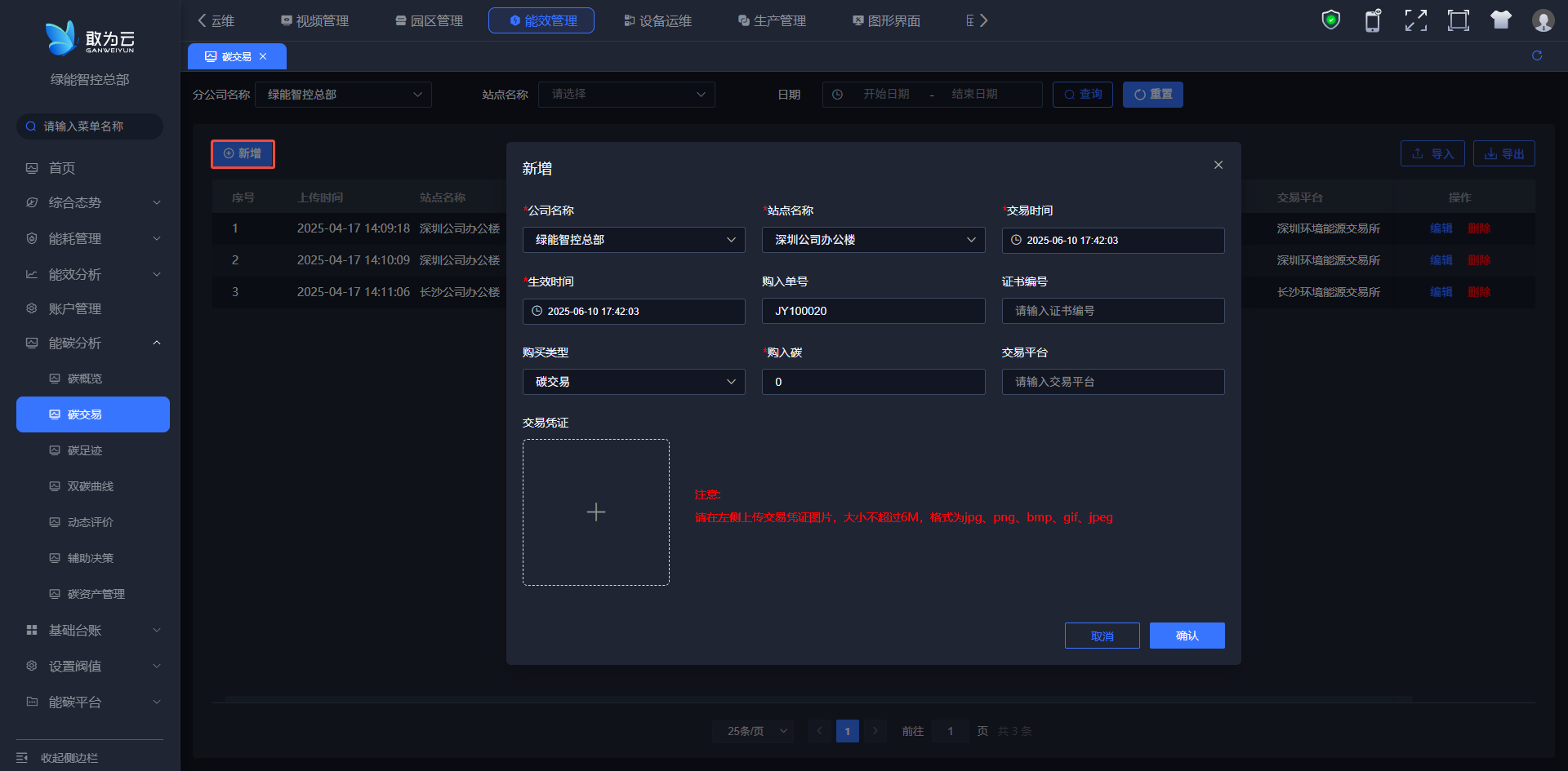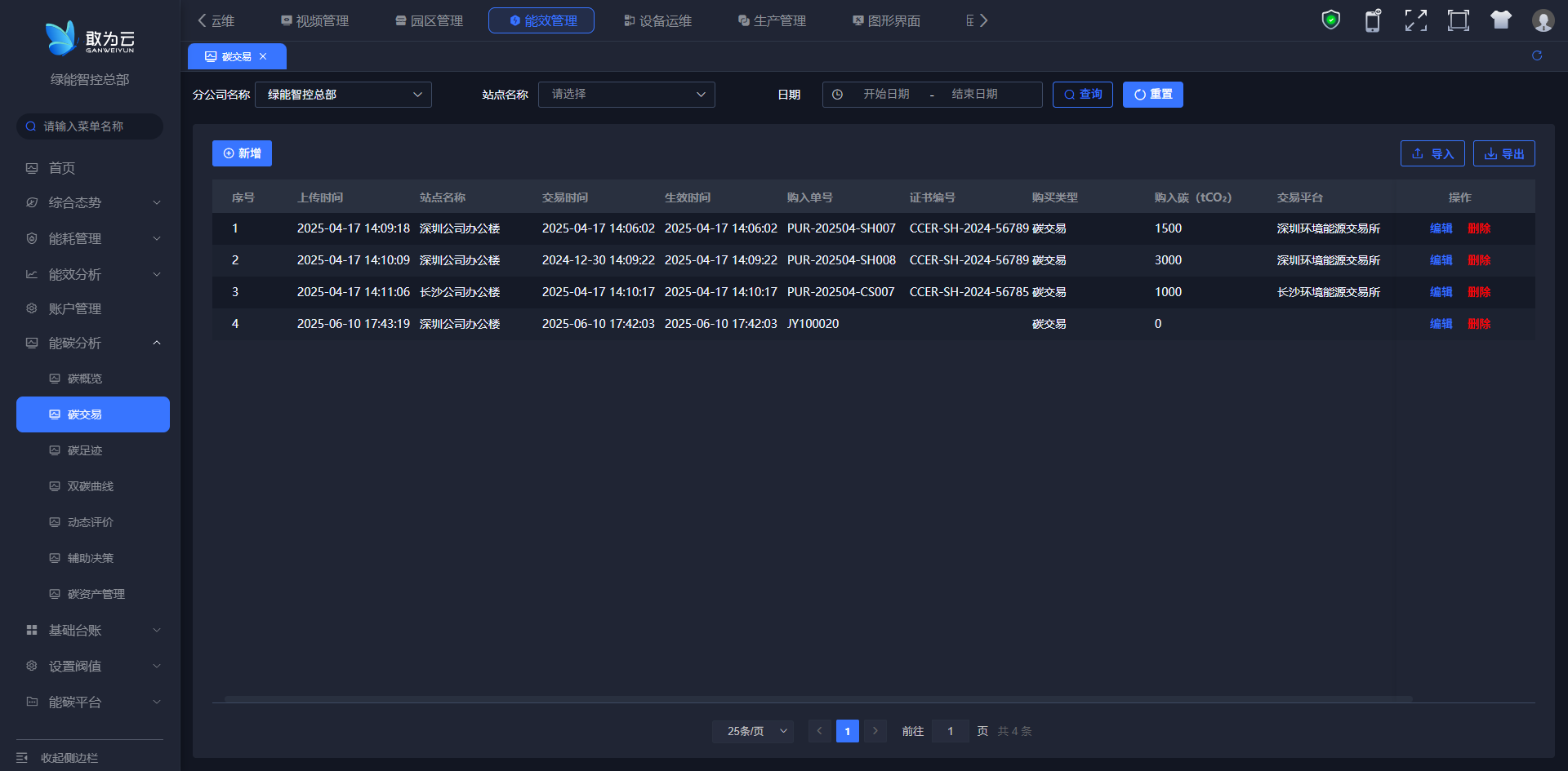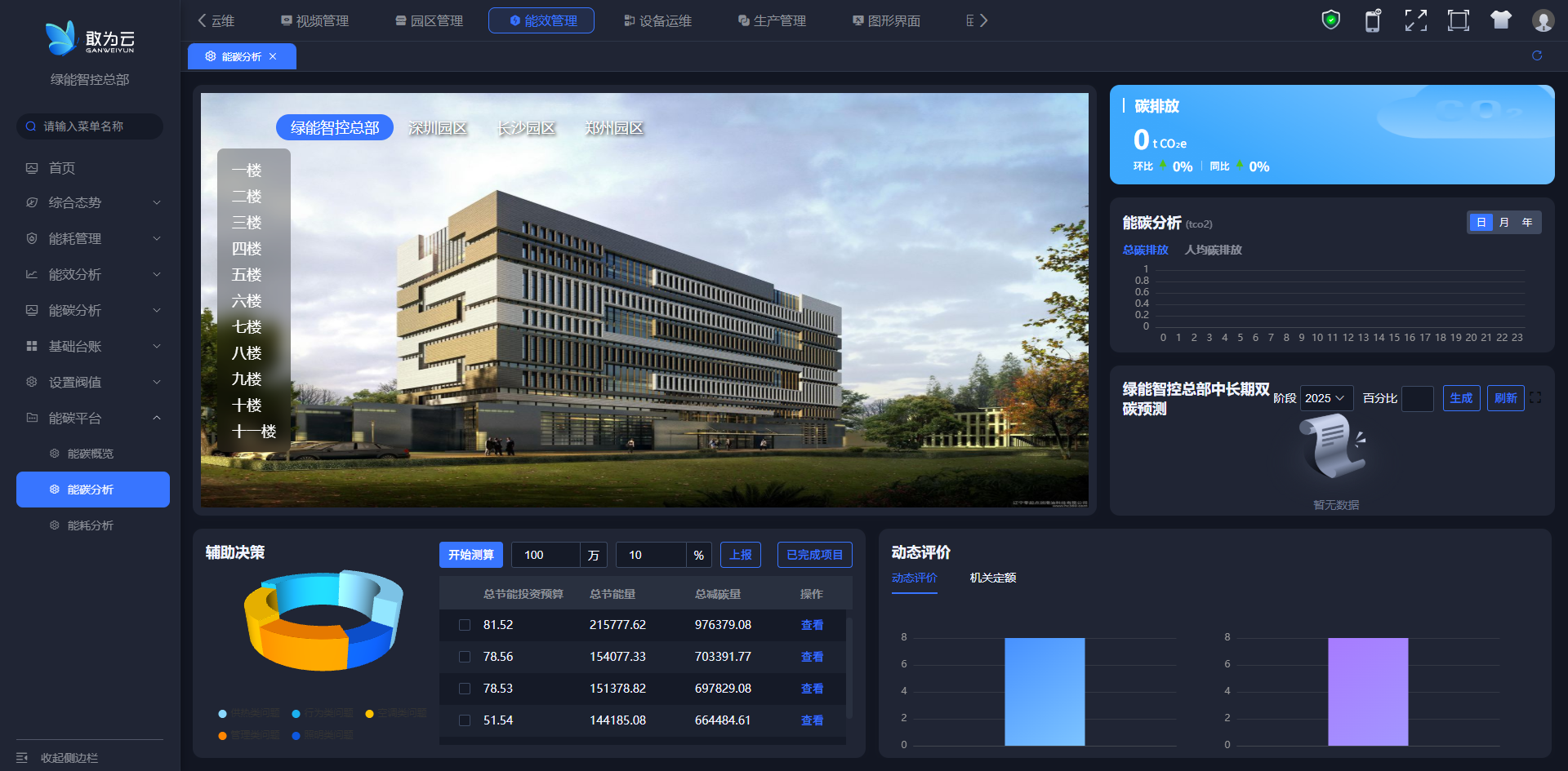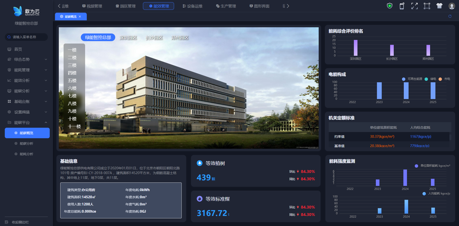 - 碳排放:展示了绿能智控总部的总体碳排放情况,让用户对总部的碳排放总量有一个全面的了解。