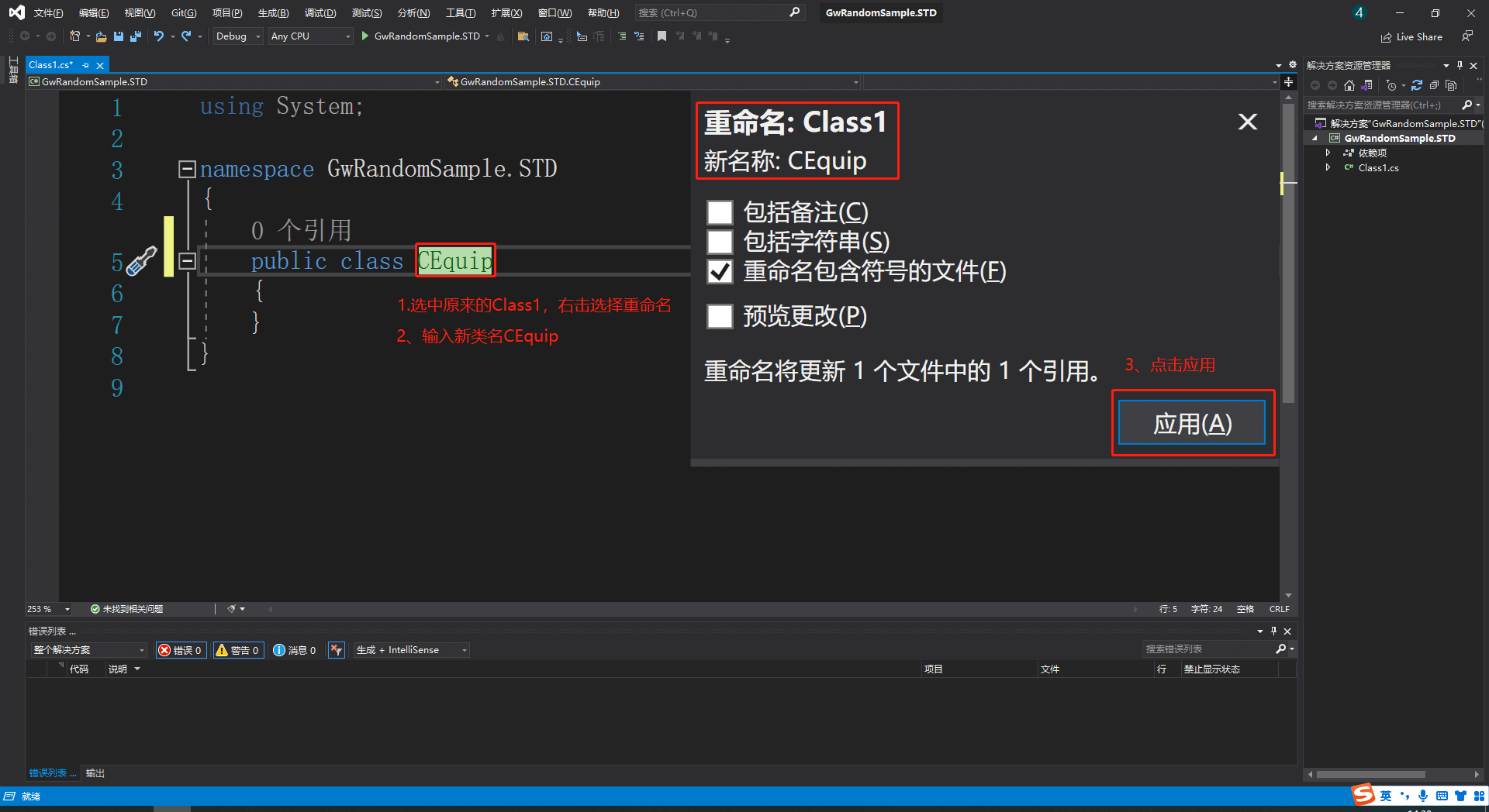 将默认创建的Class1类重命名为CEquip
