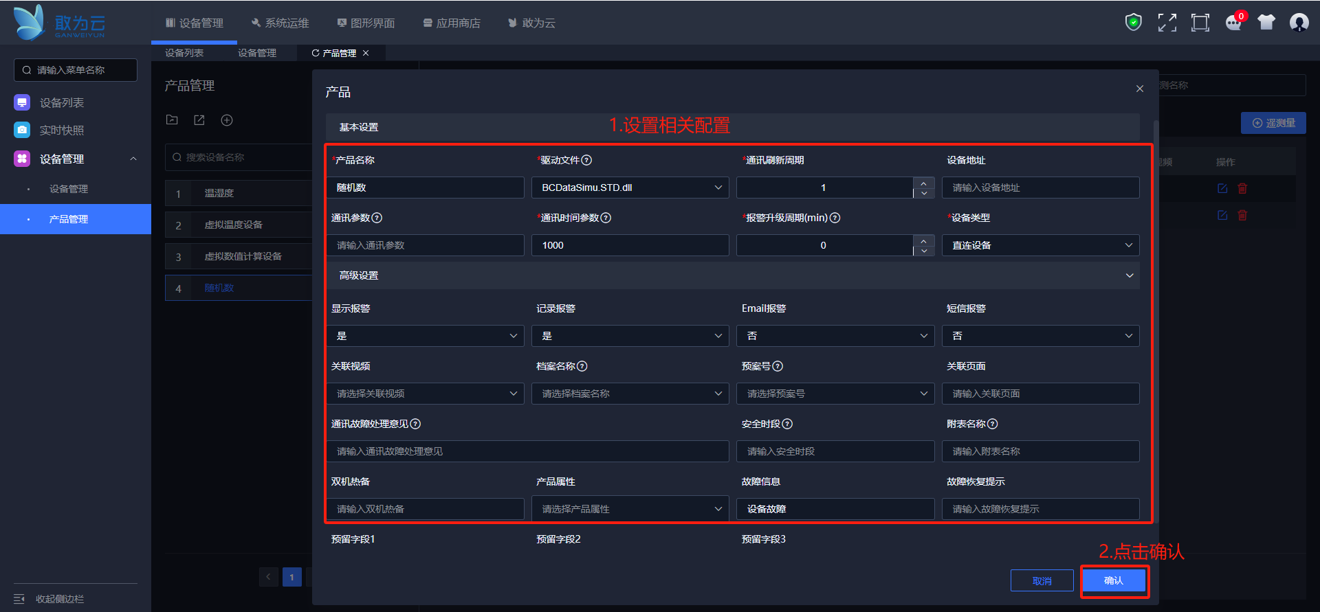 点击左侧菜单栏设备管理->产品管理。