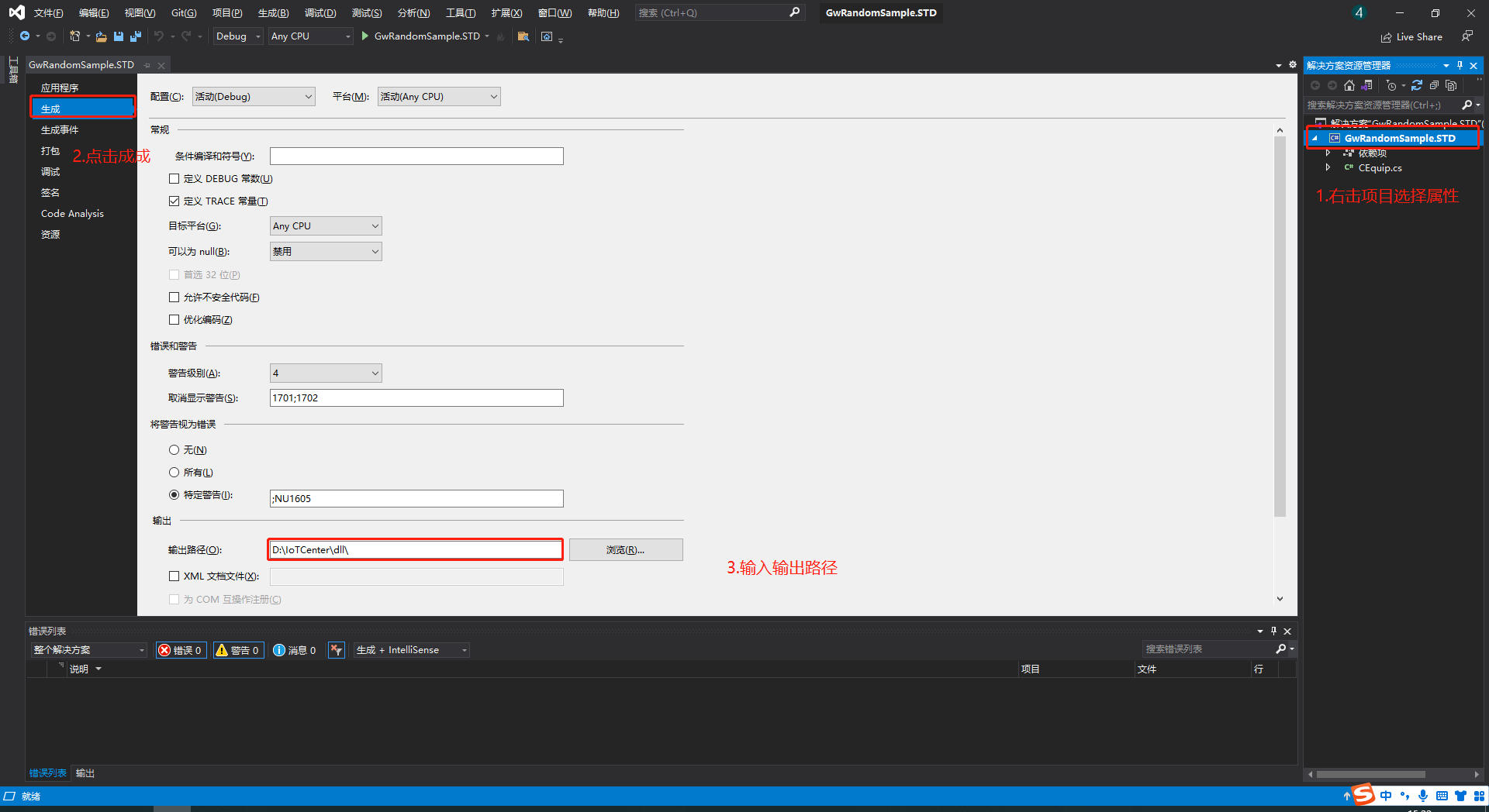 设置项目的生成路径为D://IoTCenter//dll目录。