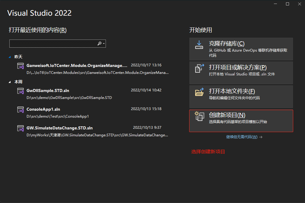 打开Visual Studio选择创建新项目