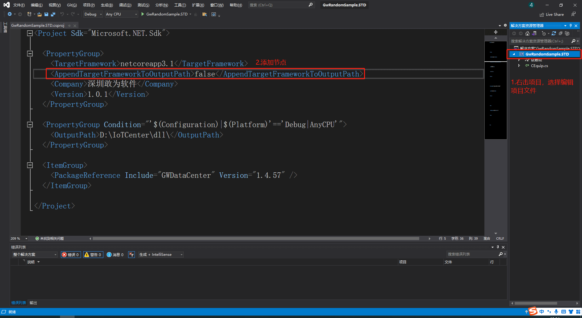在解决方案资源管理器中右击项目选择编辑项目文件