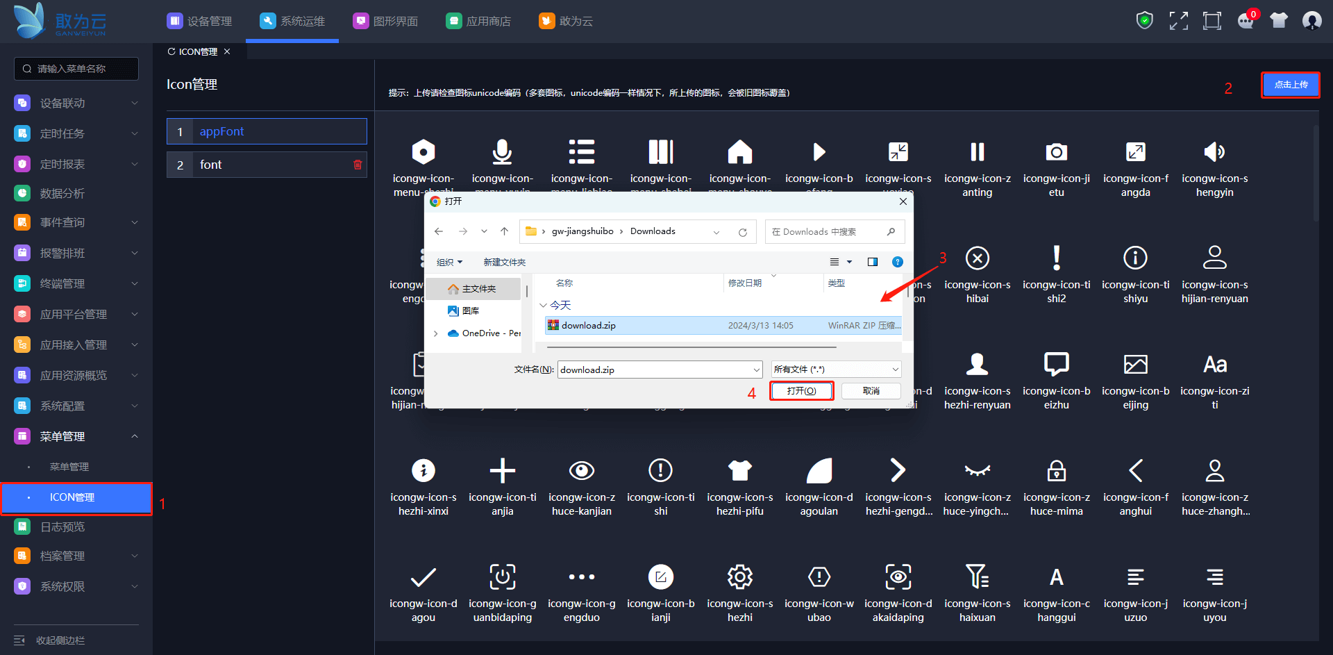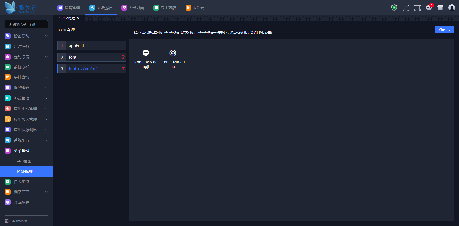点击ICON管理。