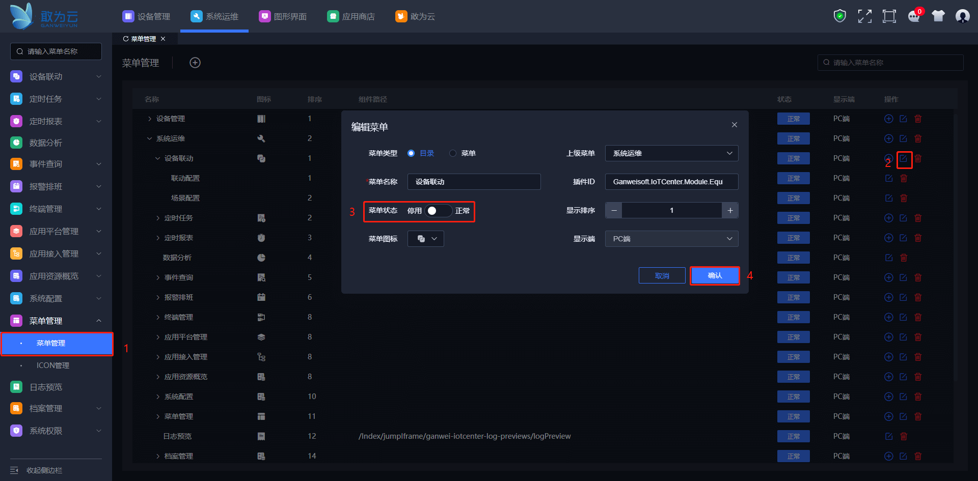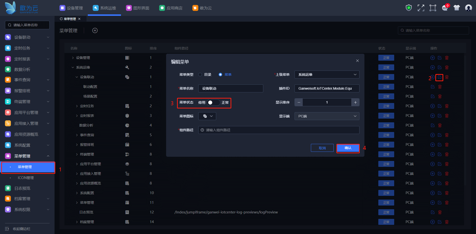 排序: 数字越小在左侧菜单列表越靠前。