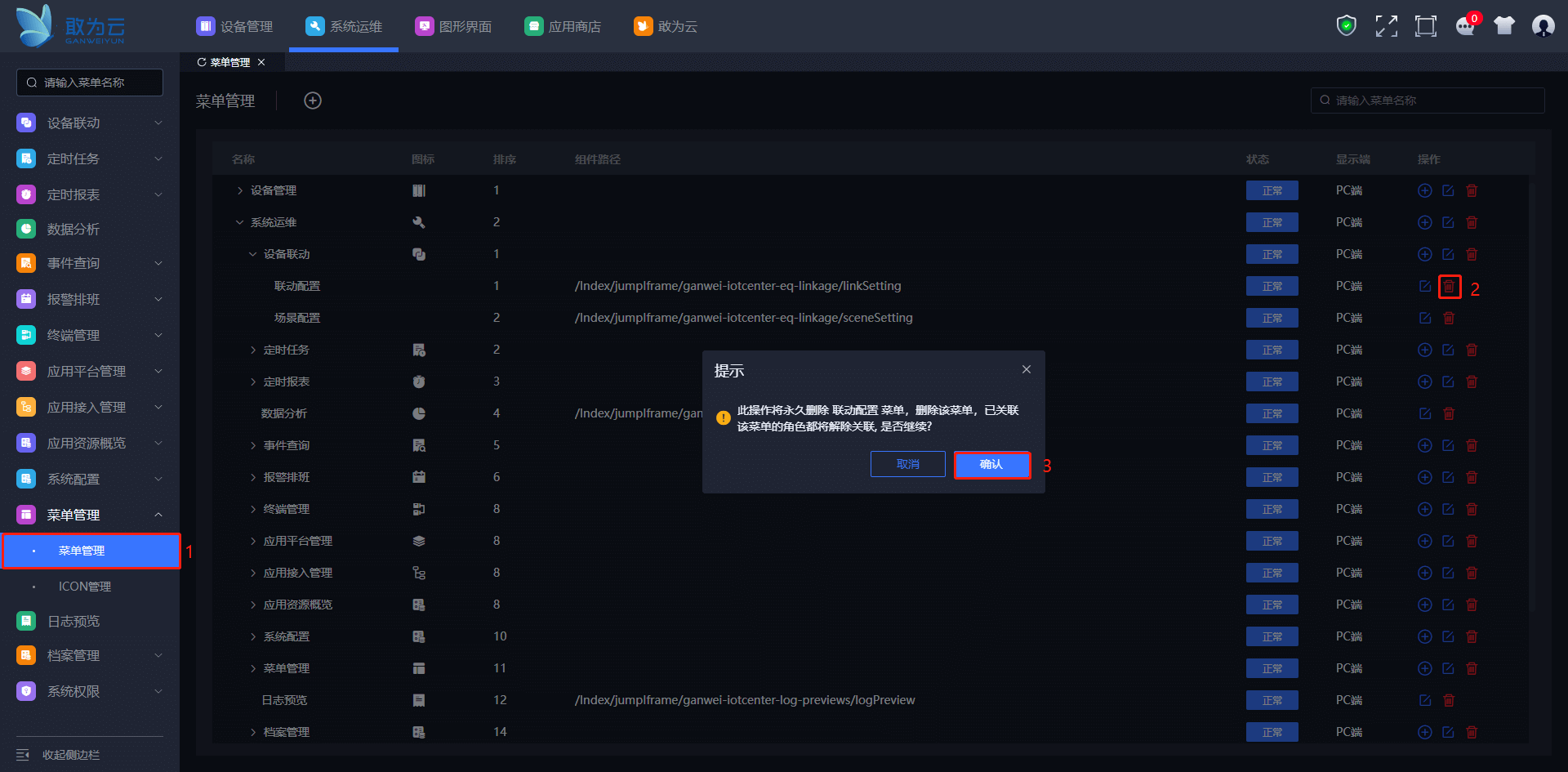 # 删除目录与菜单