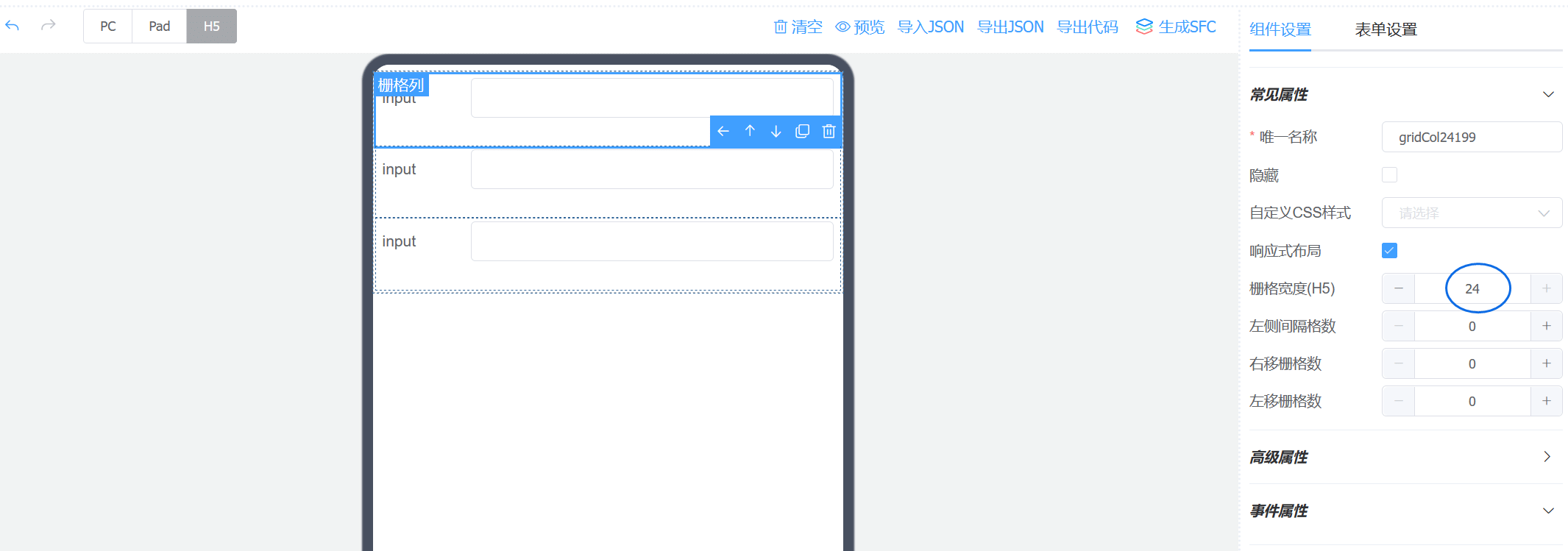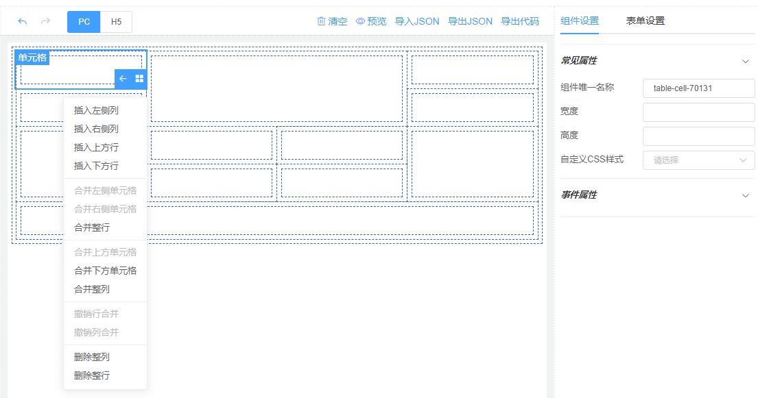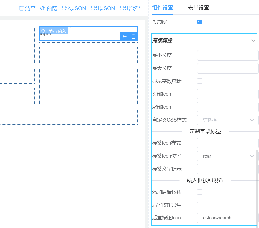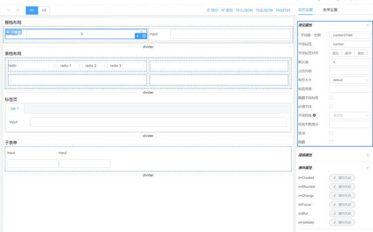 实现思路同上,根据组件的JSON配置生成相应的Element UI组件模板代码。