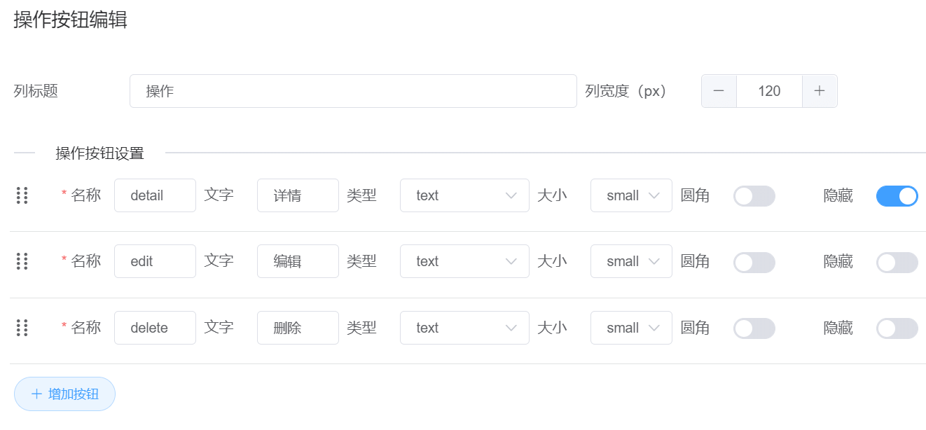 options:组件属性对象,每一个属性值对应一个属性编辑器。