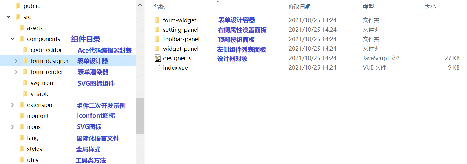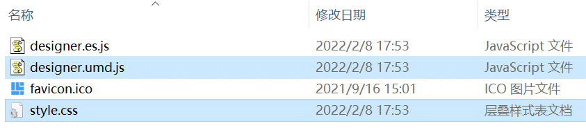 1.运行 npm run lib 即可完成打包,内含v-form-designer、v-form-render两个组件,输出的库文件如下: