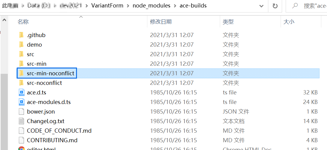 私有部署方法:将node_modules/ace-builds/src-min-noconflict目录下的所有文件上传到web服务器或CDN。