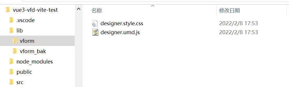 - 在新项目根目录新建lib/vform,将上述两个文件复制到vform目录,目录结构如下所示: