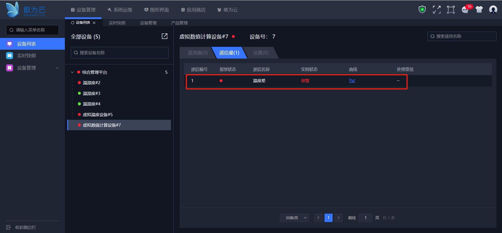 添加遥信量后,在设备管理中添加一个虚拟数值计算设备