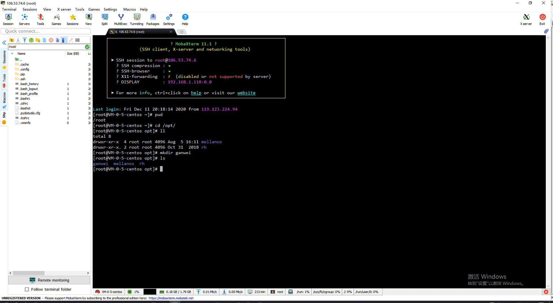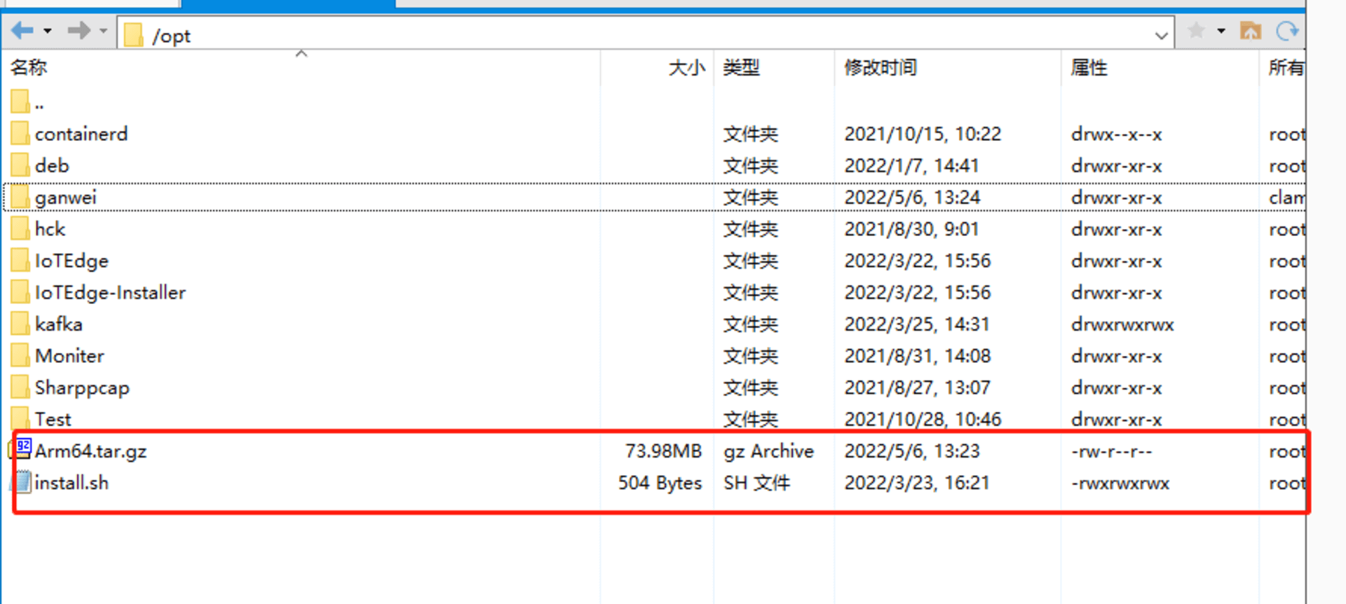 上传安装包及安装脚本,将其放置/opt目录下如下图所示。