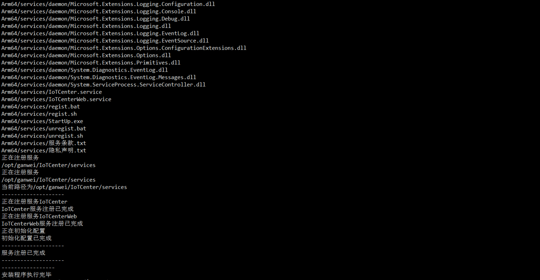如有需要,可以在前台启动程序,会输出当前程序的执行信息。请进入/opt/ganwei/IoTCenter/bin目录并执行以下命令: