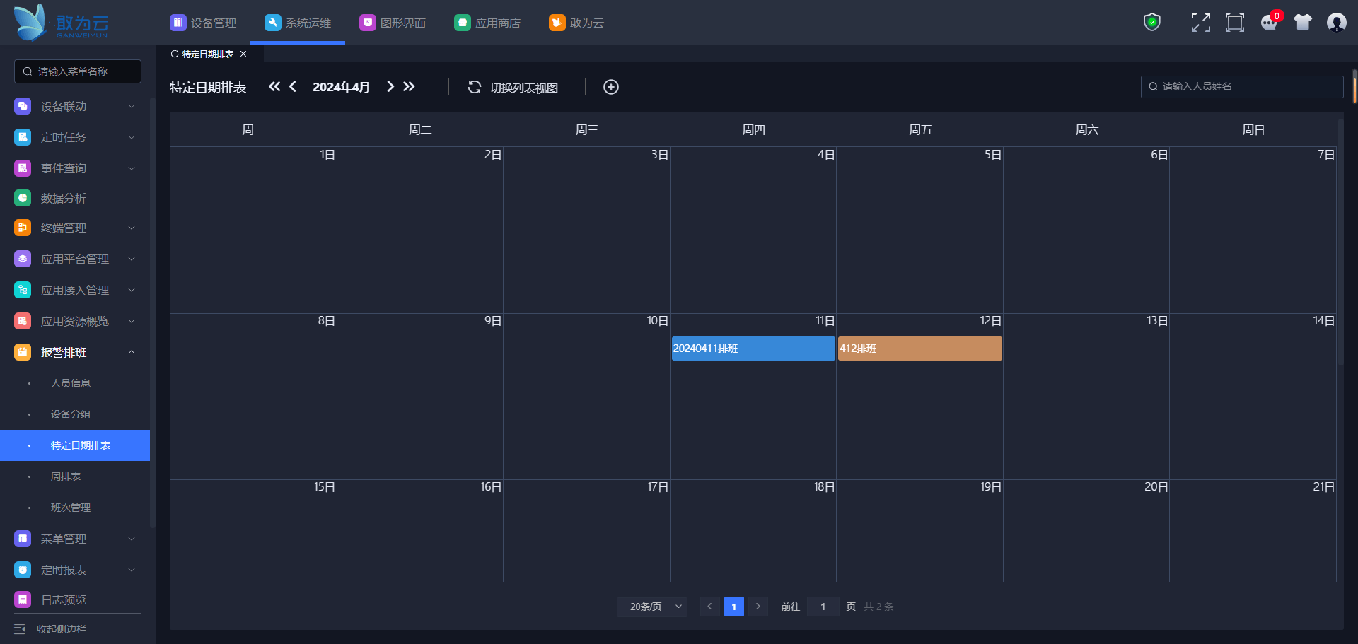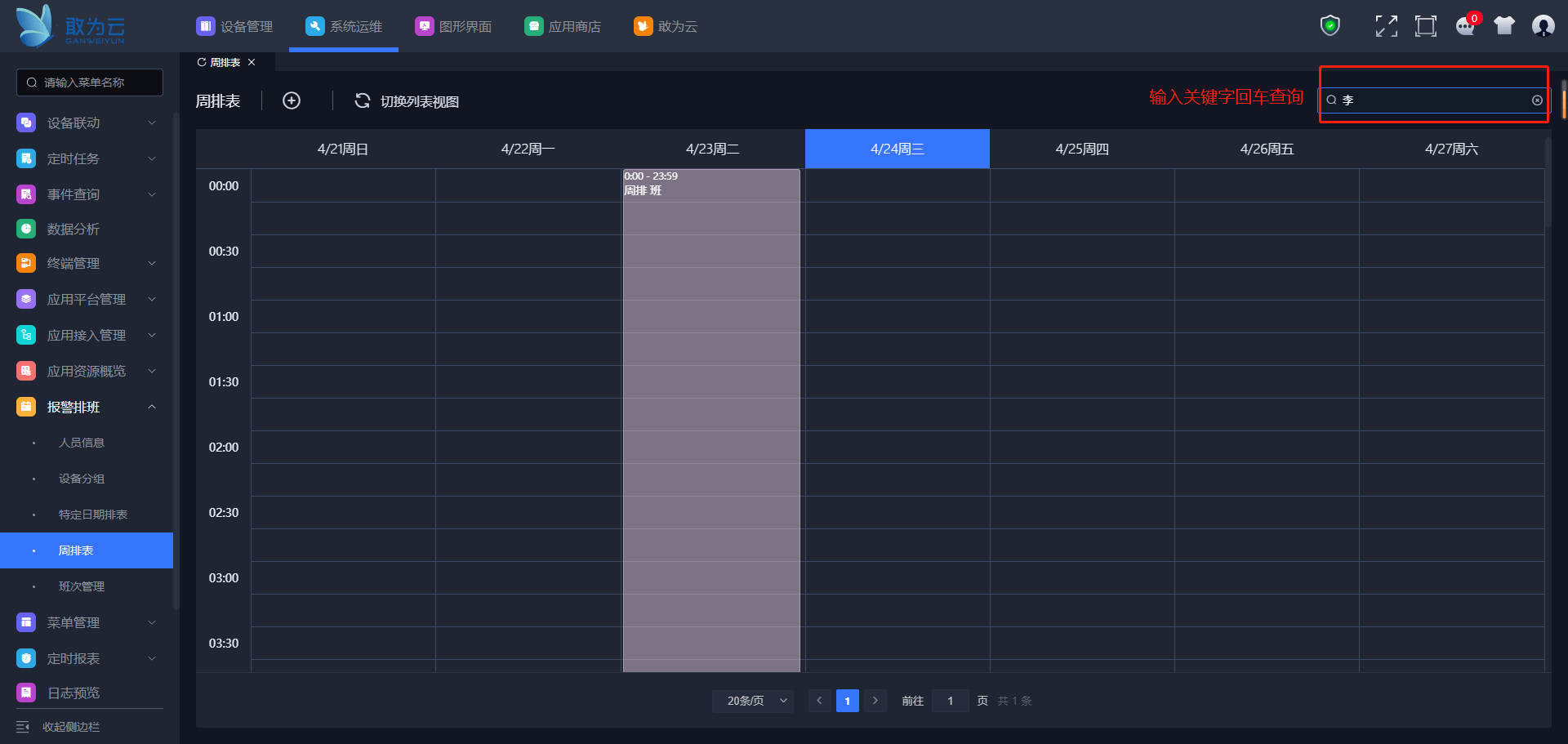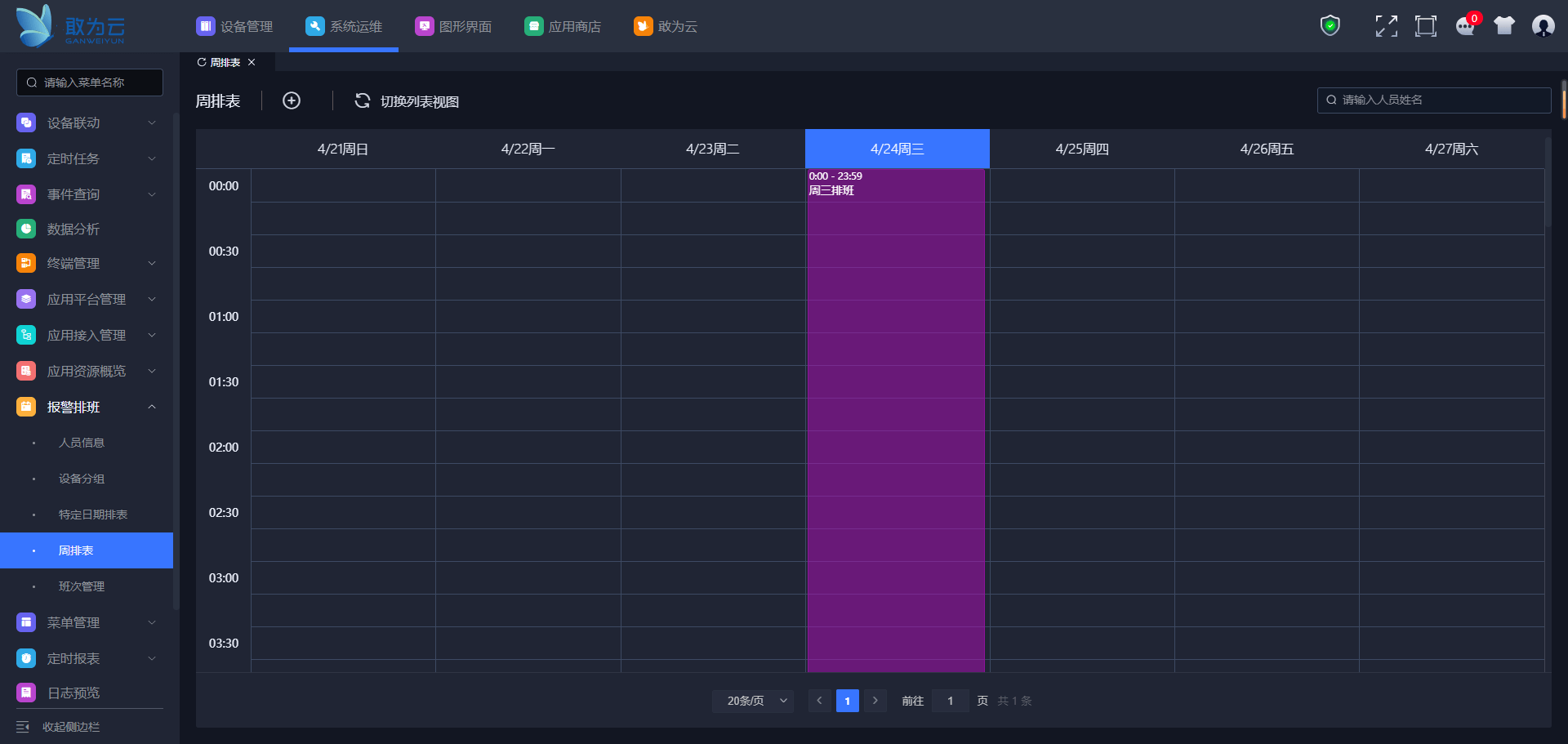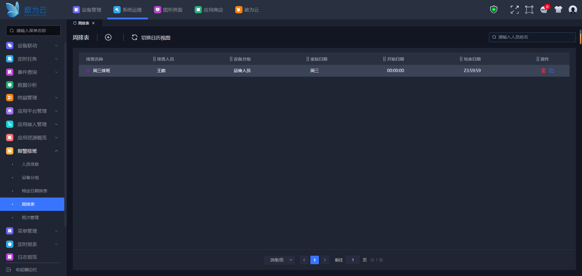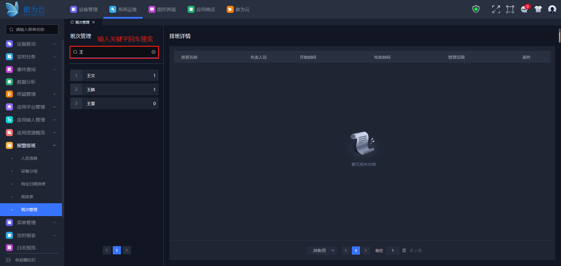 工单管理功能需要结合报警排班功能一起使用,因此先介绍报警排班功能。
