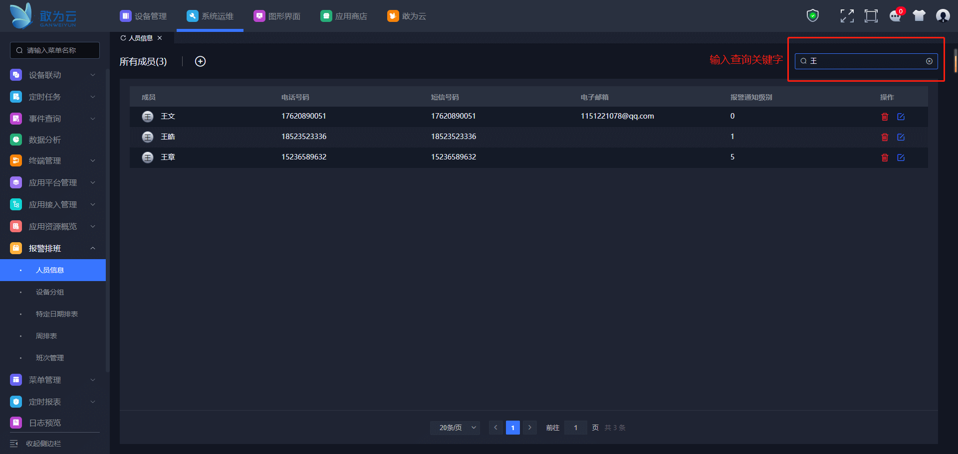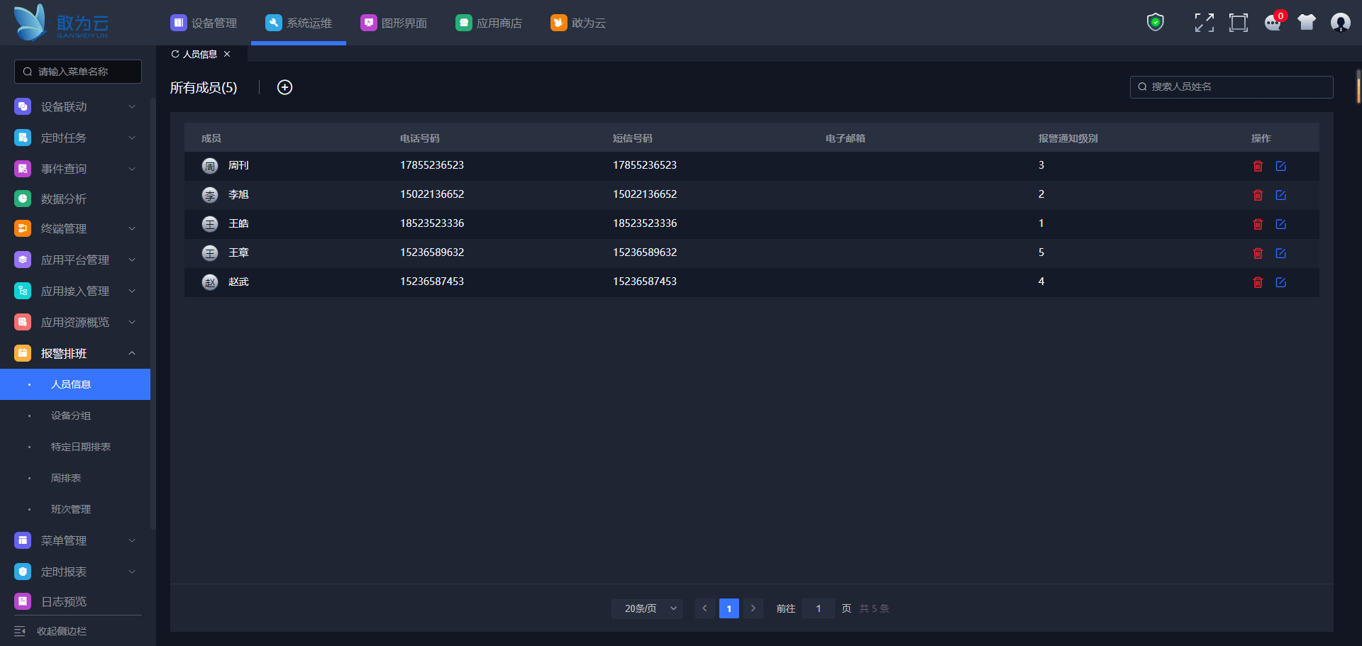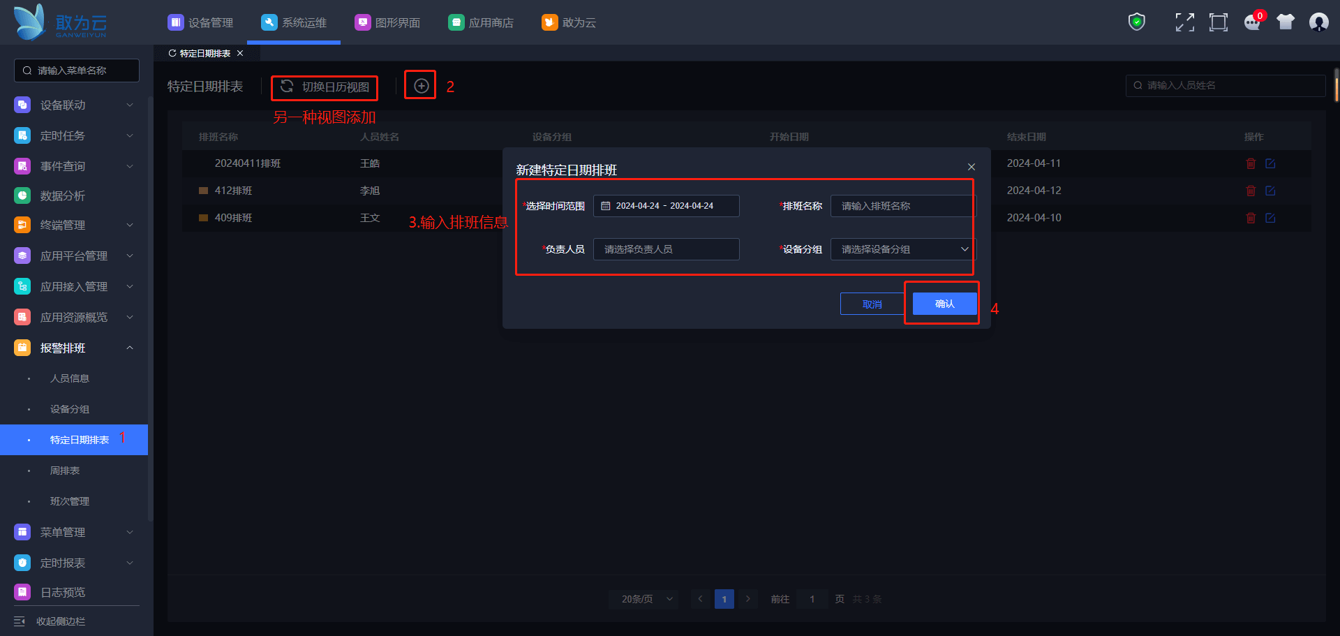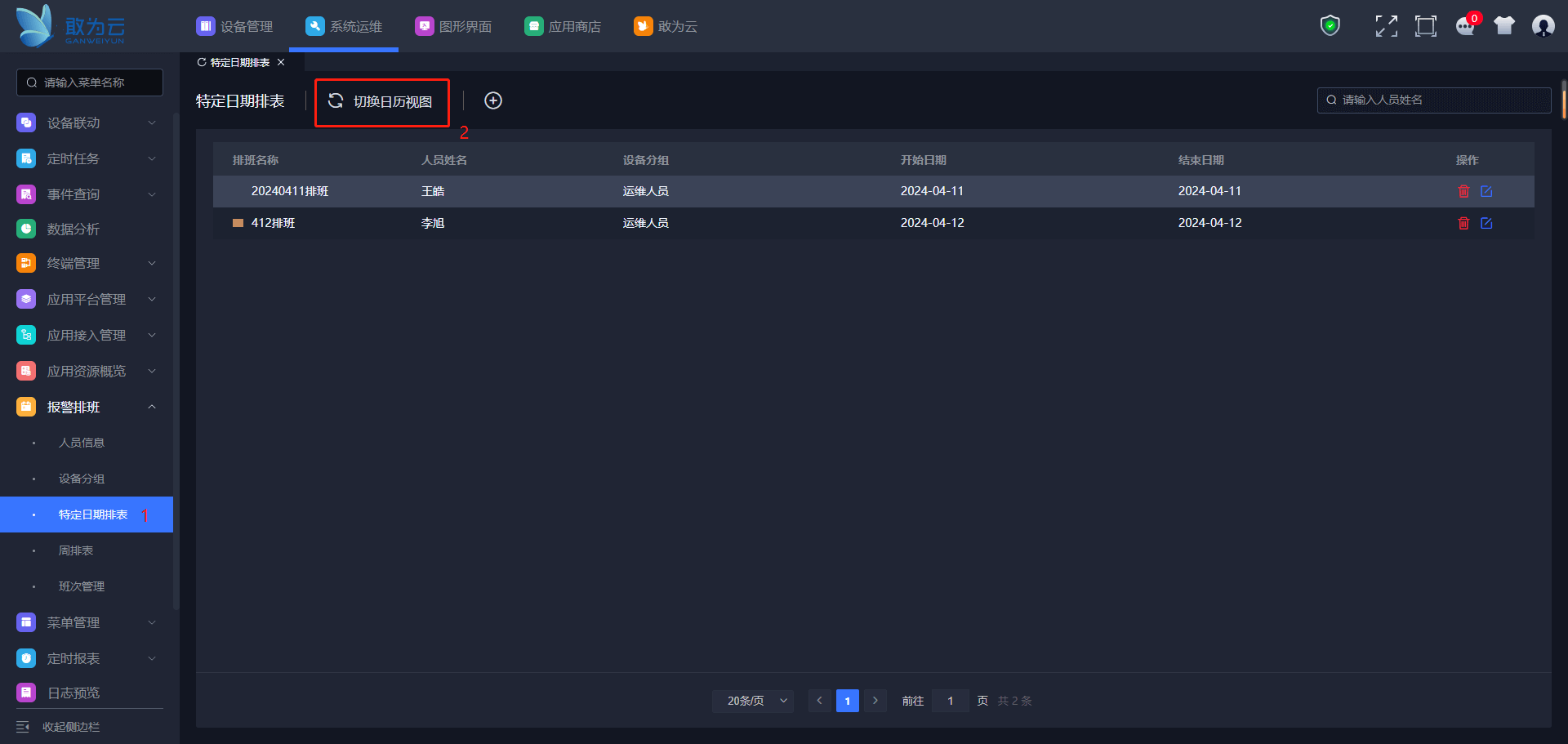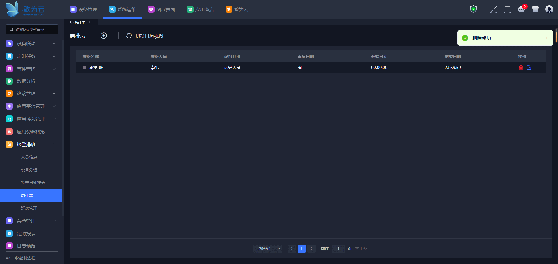 工单管理功能需要结合报警排班功能一起使用,因此先介绍报警排班功能。