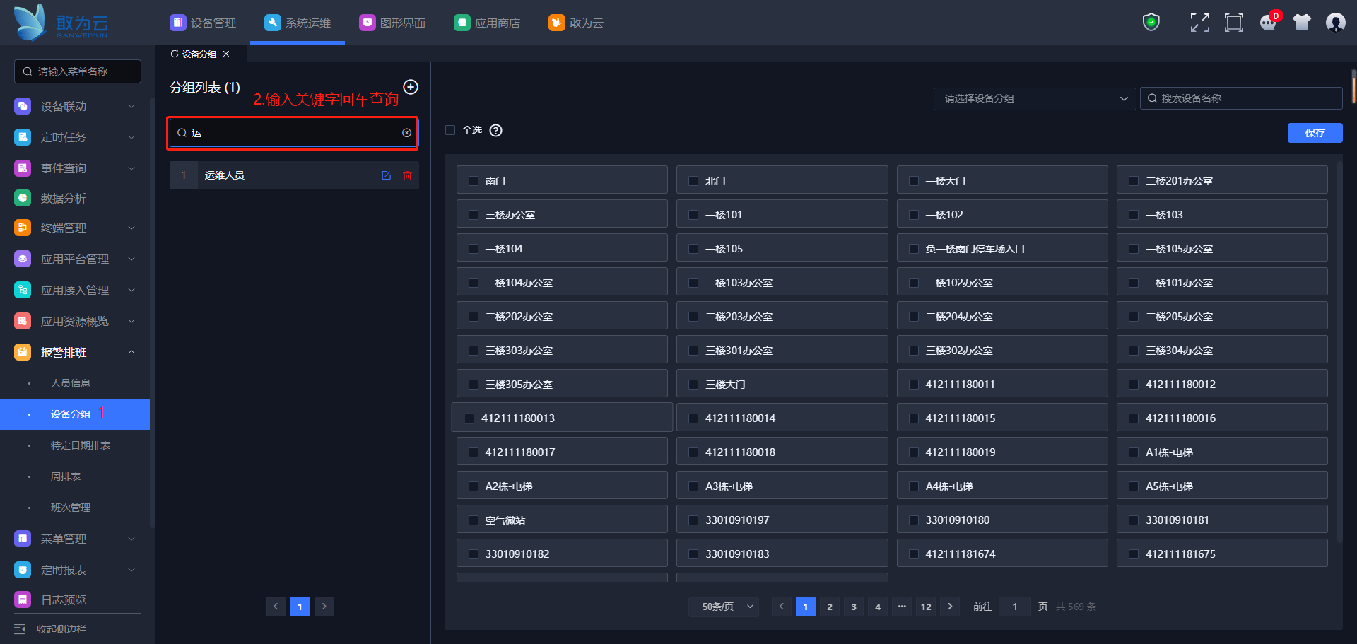 输入分组名称或设备名称关键字查询出包含关键字的分组。