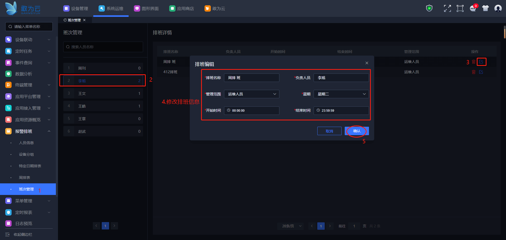 | 2 | 支持编辑人员班次 | 支持修改班次。 |