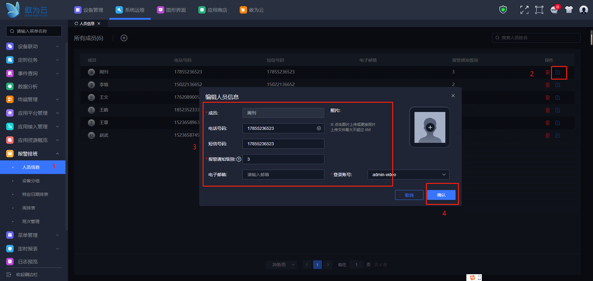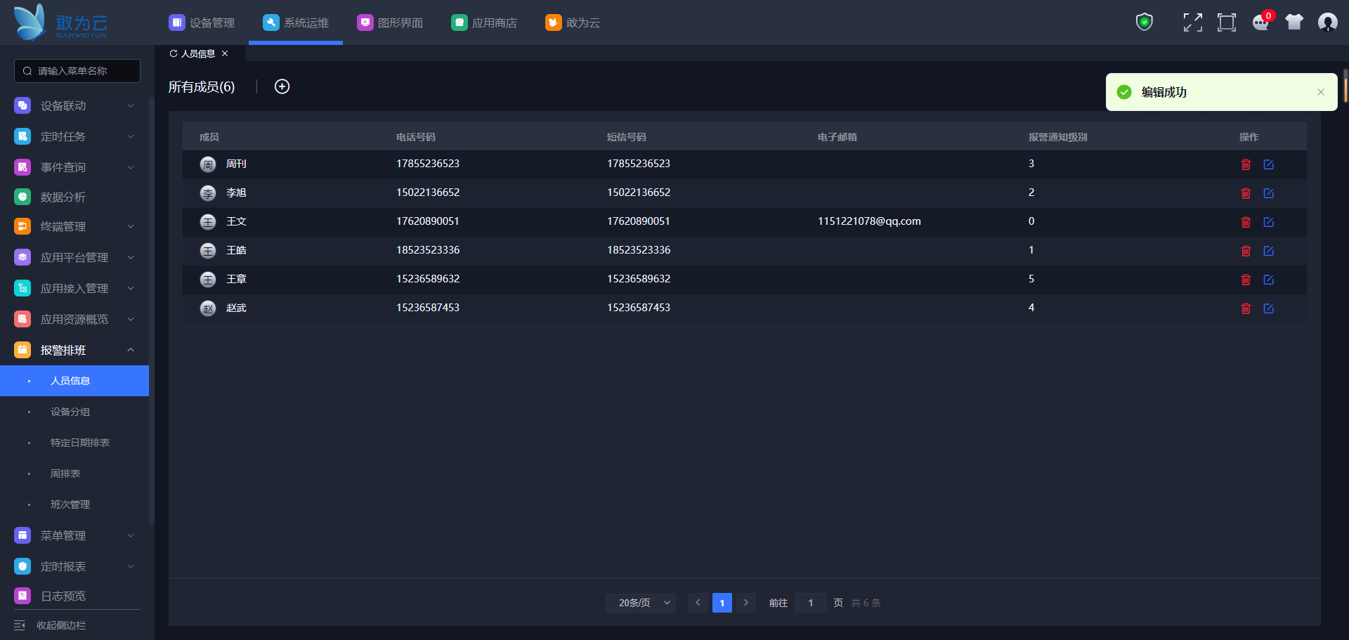 点击保存按钮,编辑成功,列表显示修改后的人员信息。