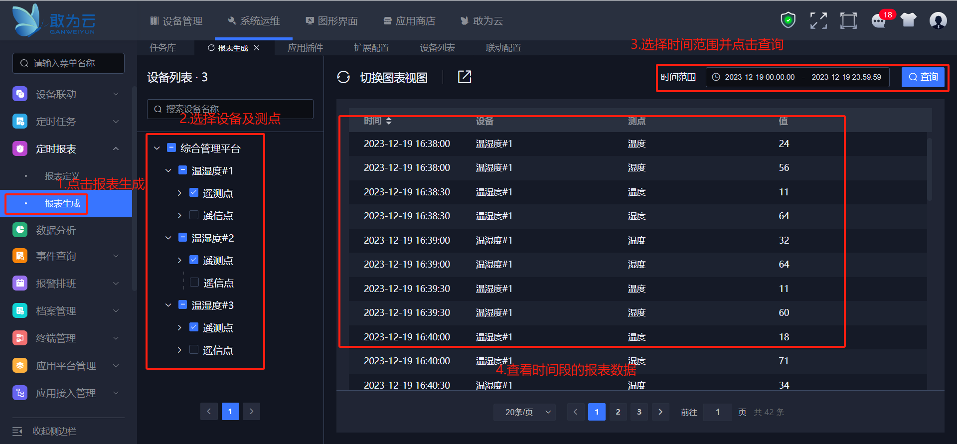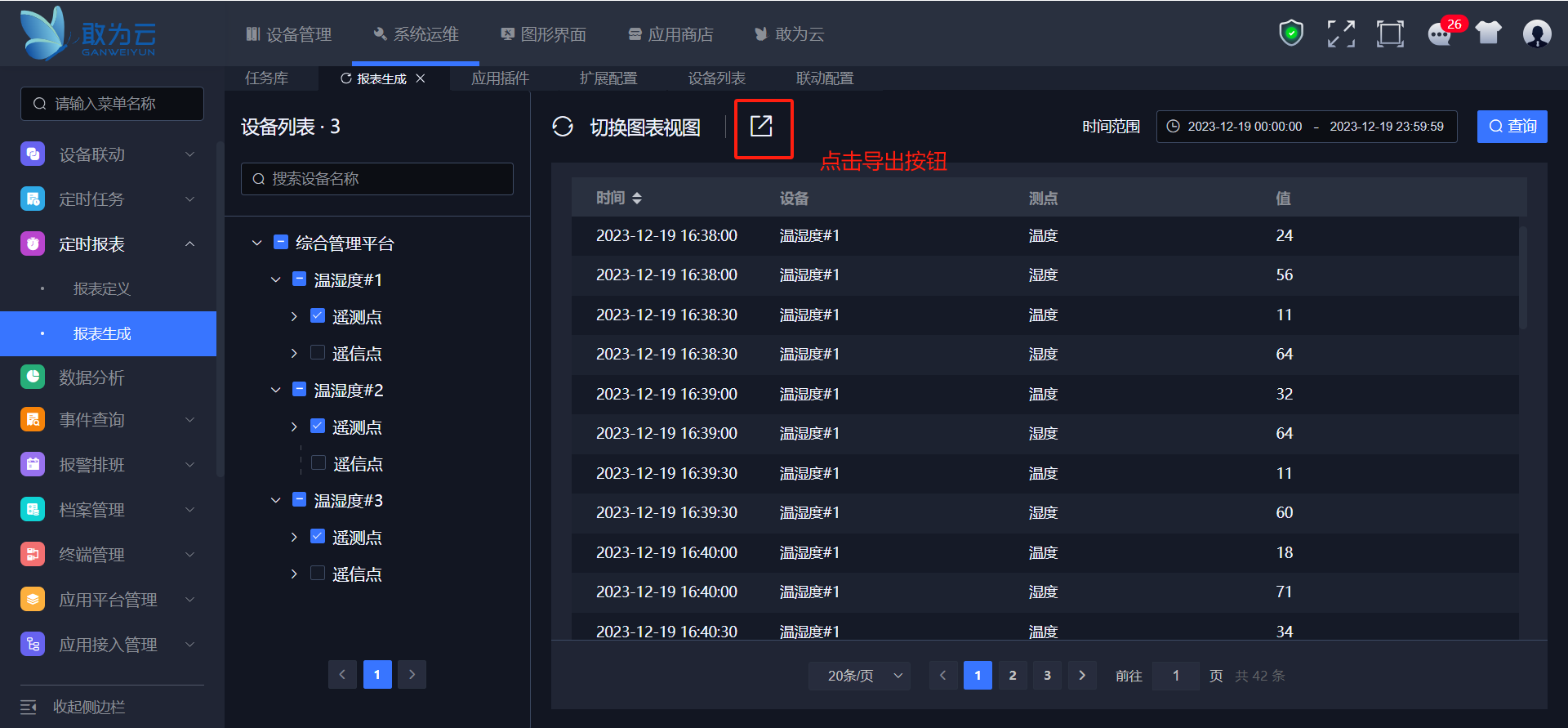 本节将在设置报表的基础上,通过设置定时任务来查询指定时间段的设备的测点的报表记录,并将报表记录导出保存在本地。