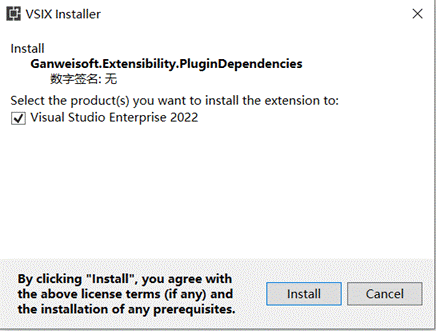 扩展安装前置条件,VS版本号区间:[17.0,18.0),请提前关闭Visual Studio,然后点击【PluginDependencies.vsix】进行安装