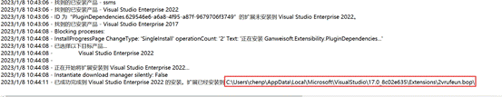 例如:C:\Users\chenp\AppData\Local\Microsoft\VisualStudio\17.0_8c02e635\Extensions\1xh3hlj5.3vg