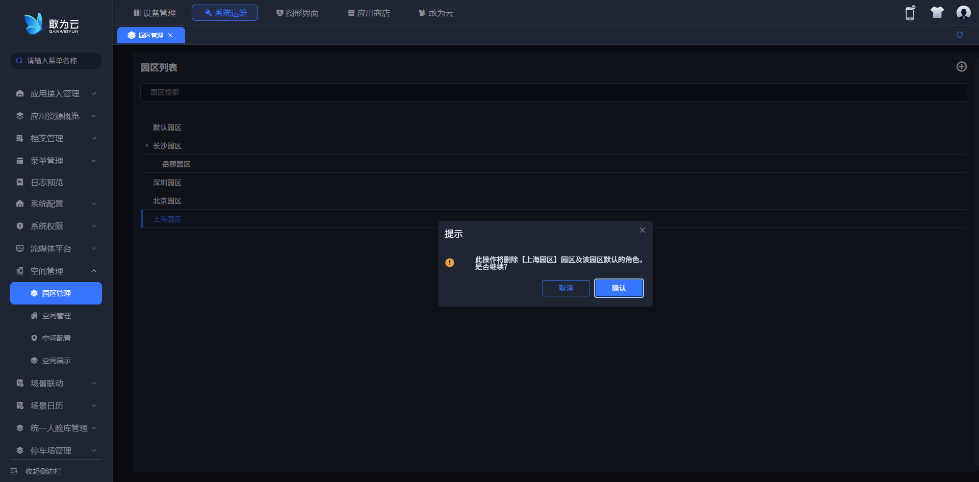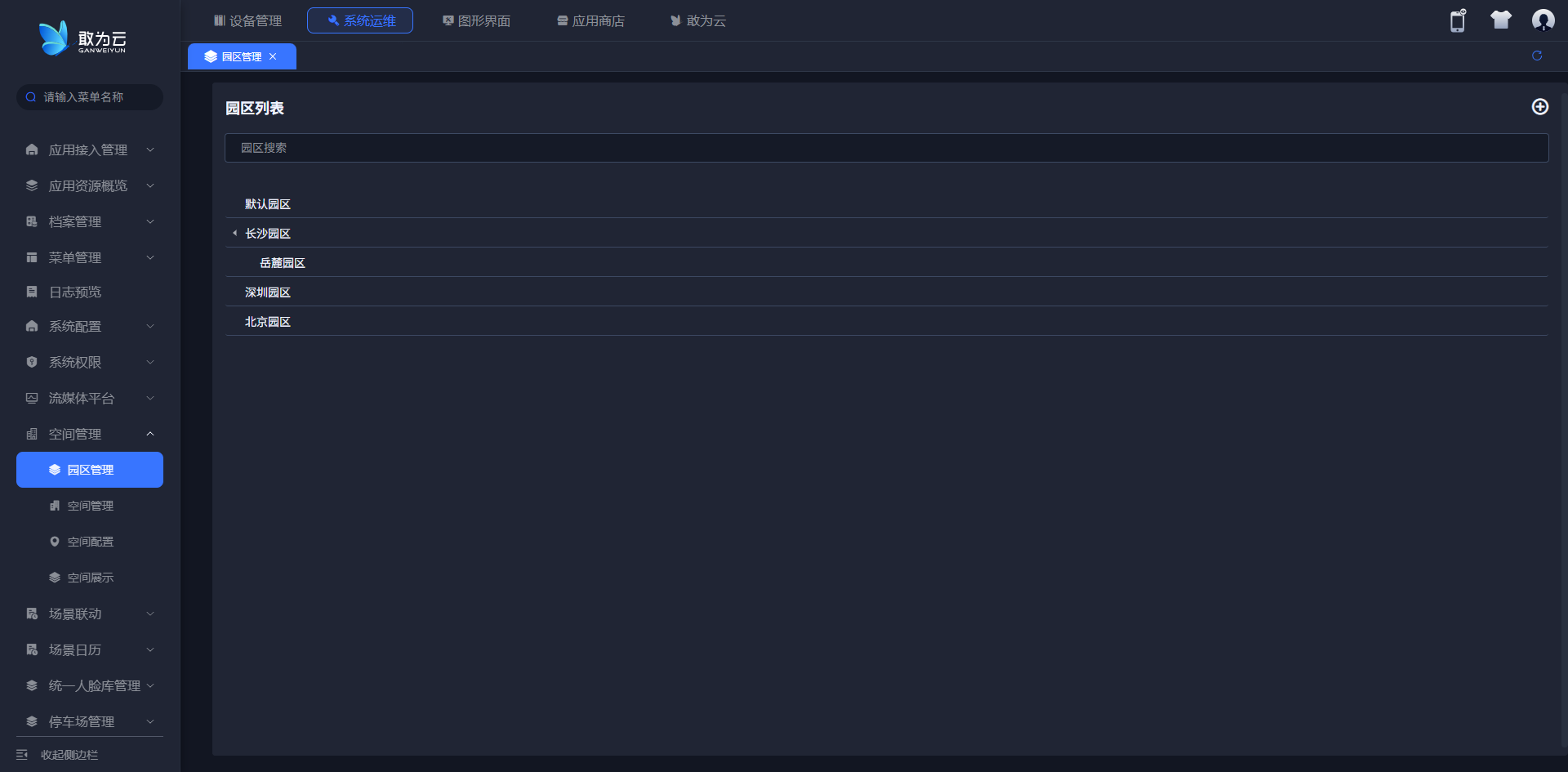 | 1 | 园区管理 | 用于添加园区与管理园区信息 |