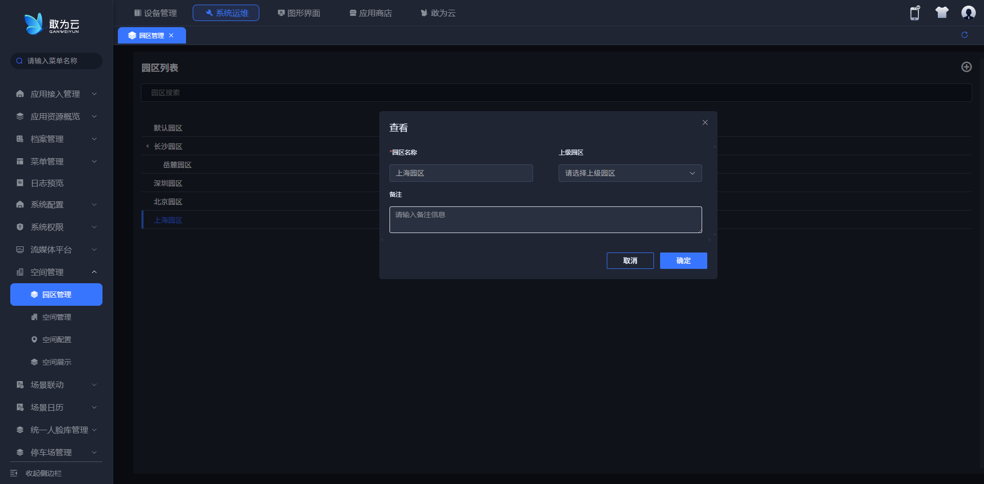 点击园区列表中的查看按钮,可以查看园区的详细信息