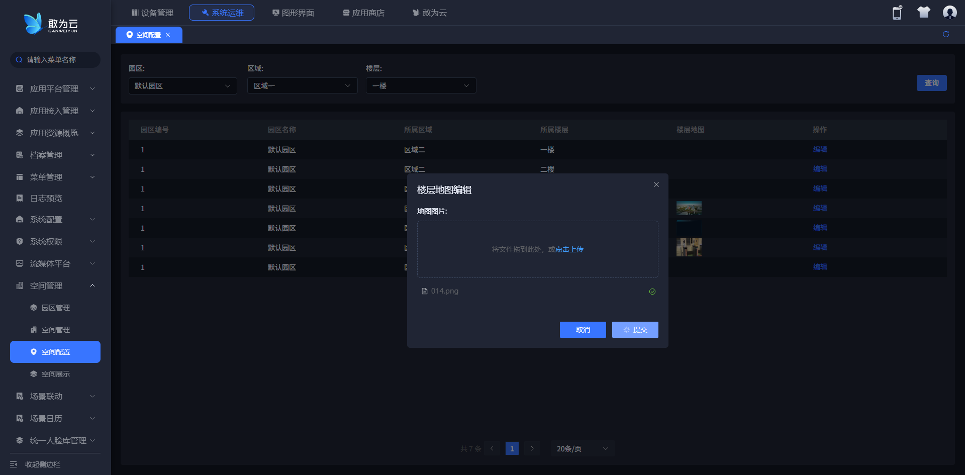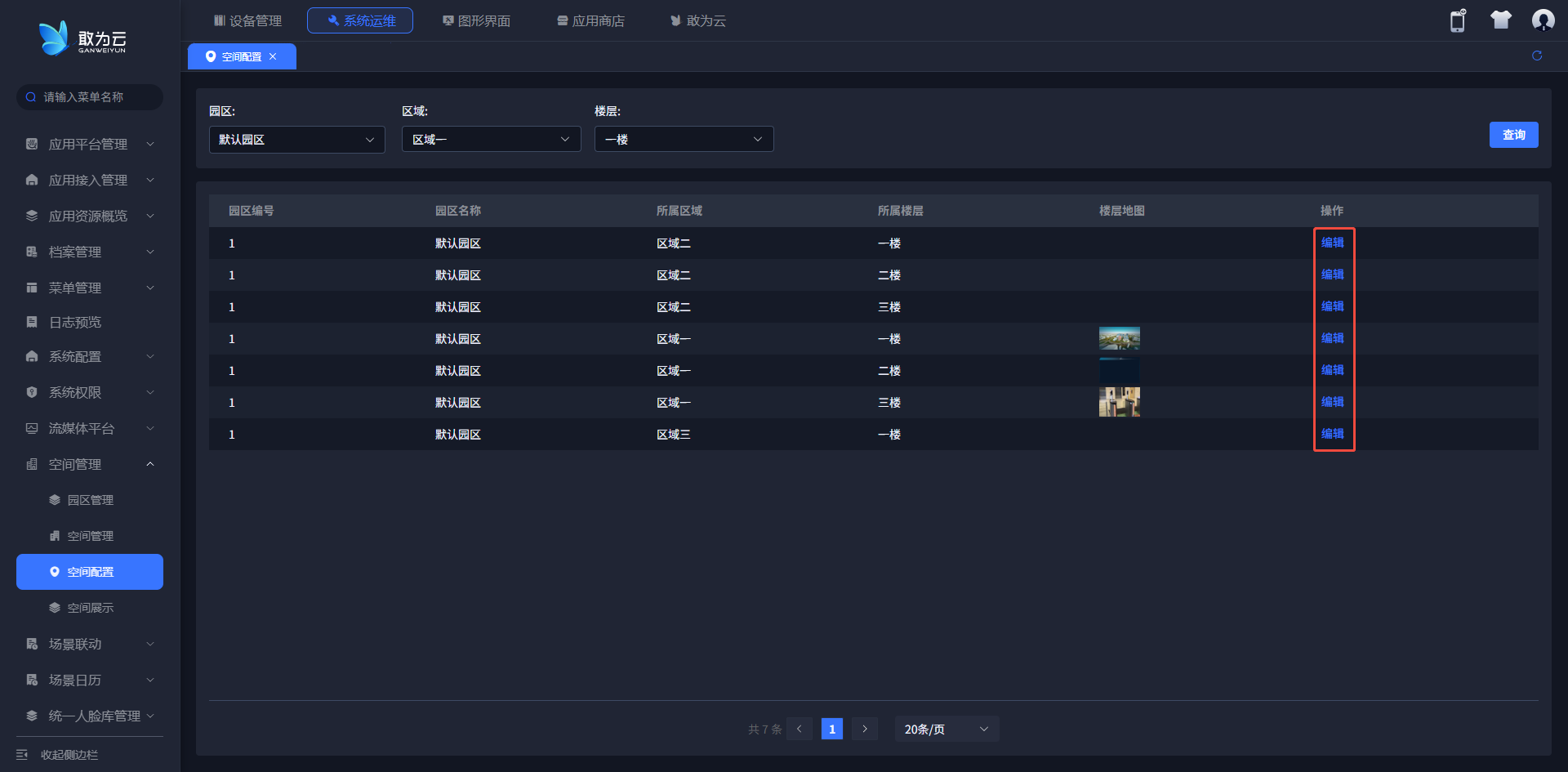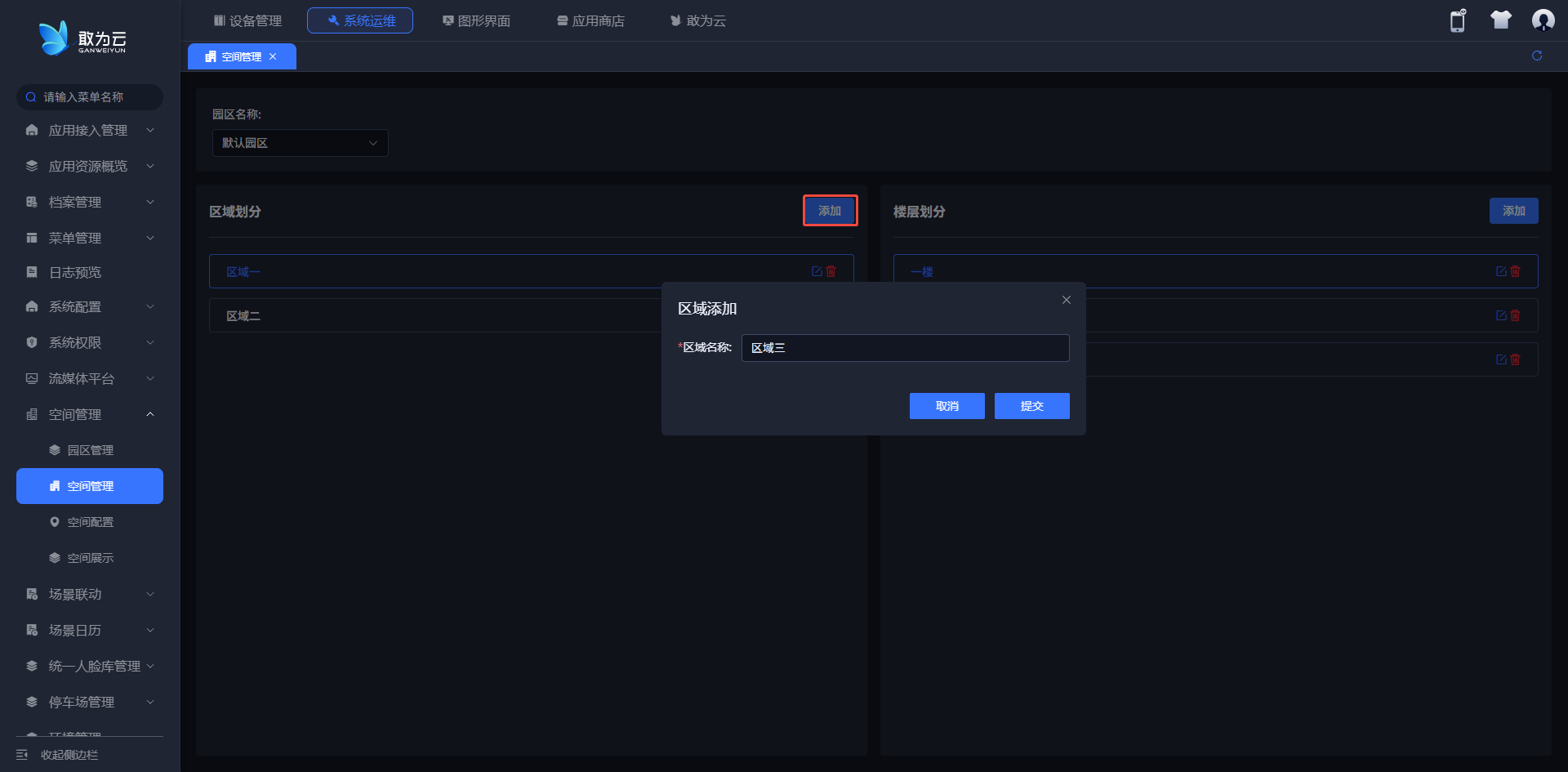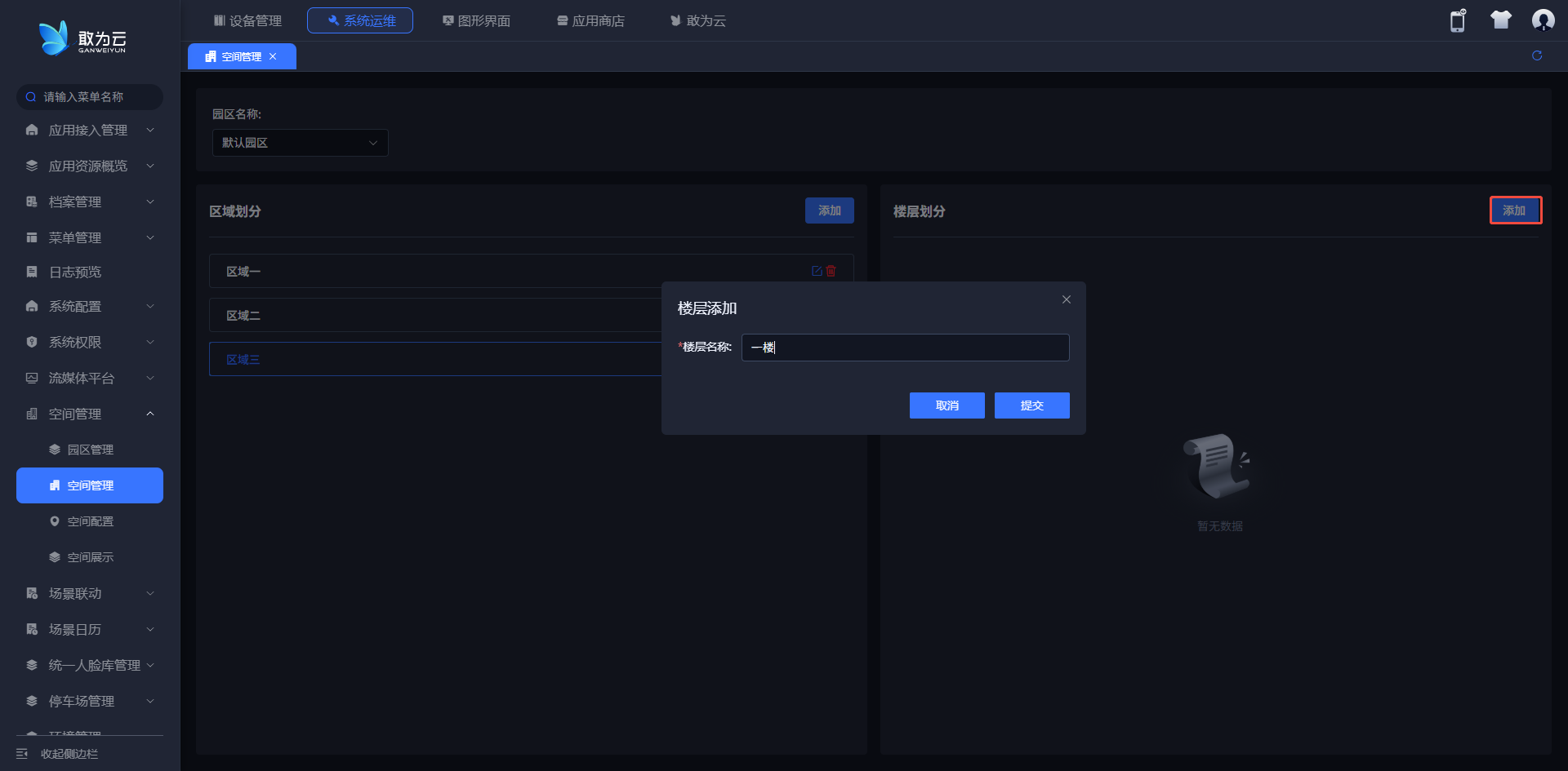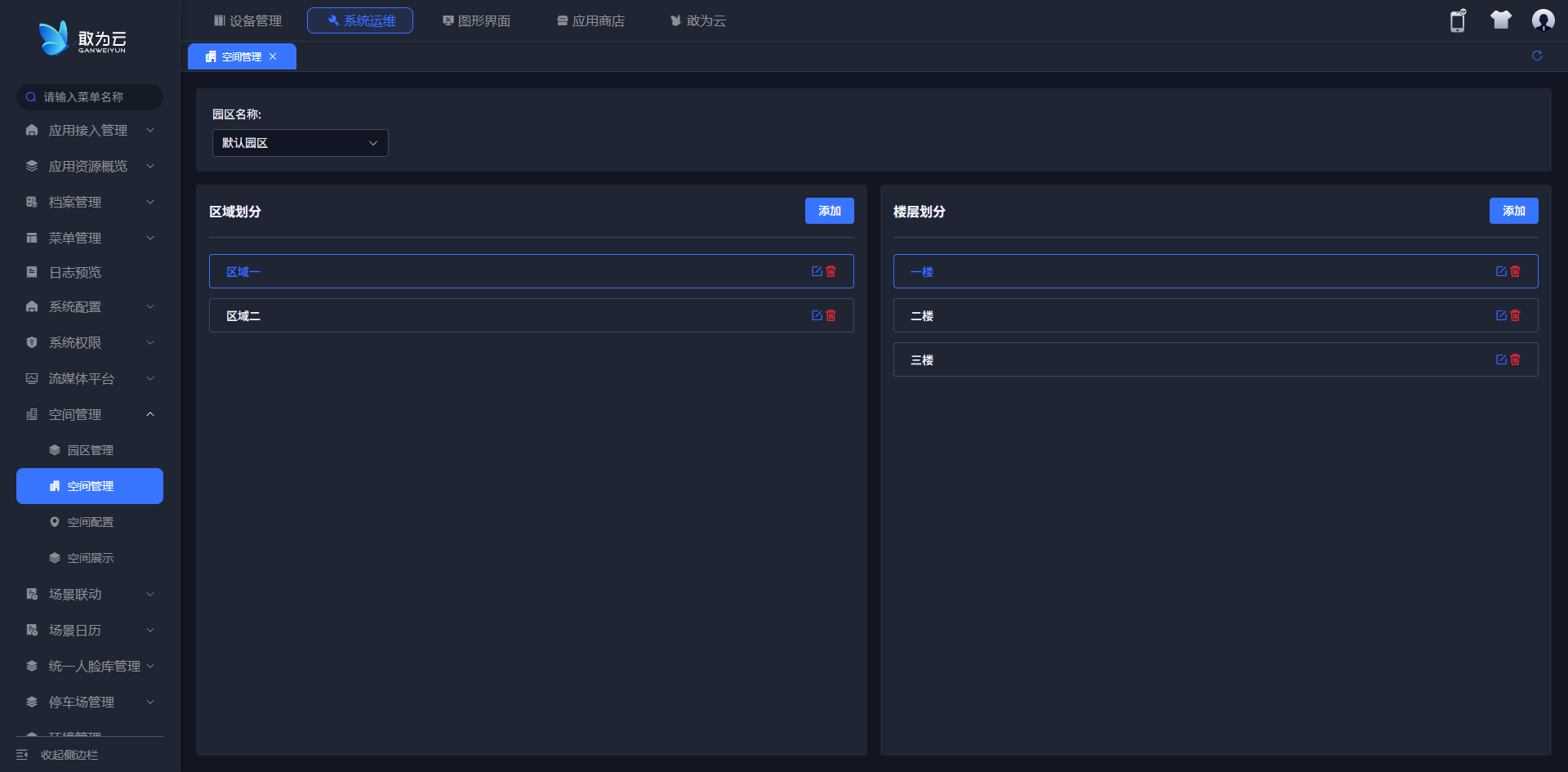| 2 | 空间管理 | 给园区添加区域楼层信息 |