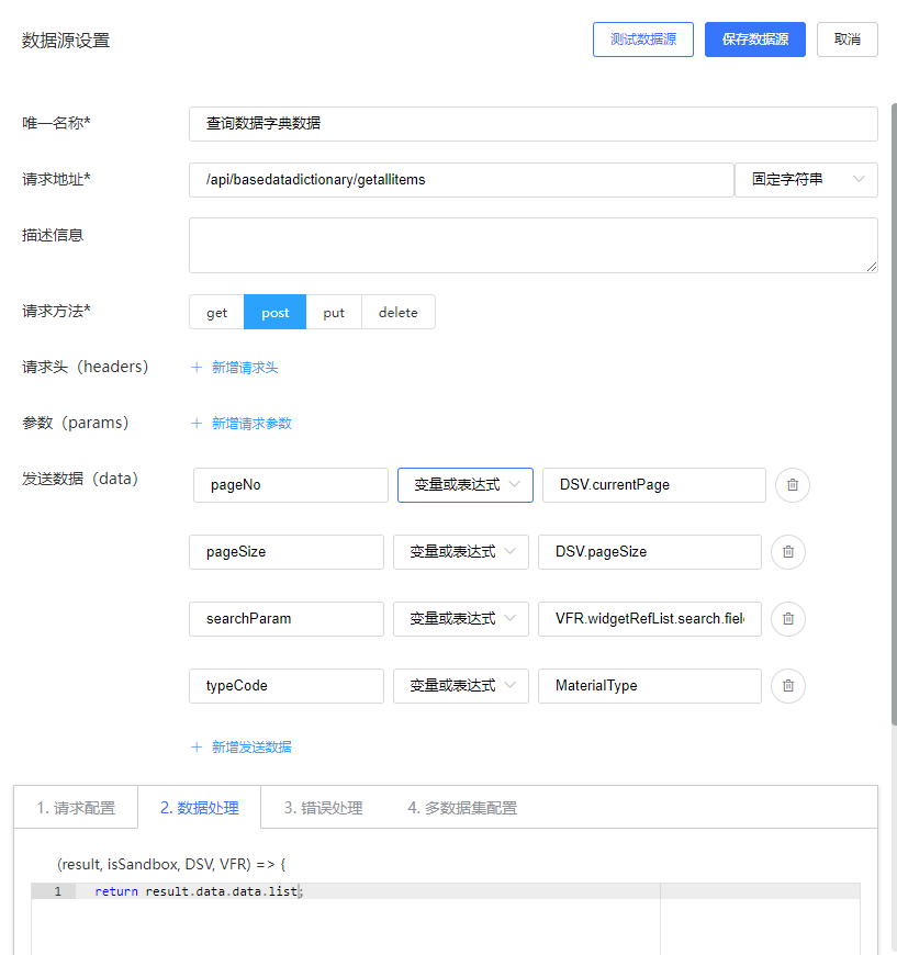 对获取到的数据结果进行加工处理,将处理过的数据return出去,参数说明如下: