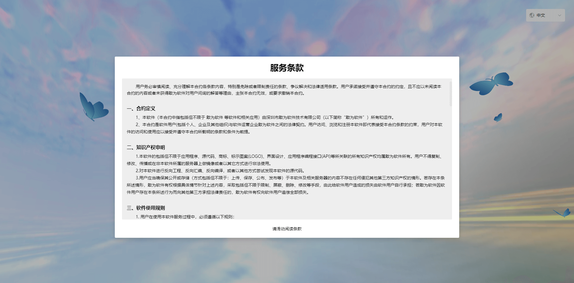 - 首次登录平台将会出现服务条款互动条款到底部,勾选同意条款等待5秒后会弹出修改密码的提示框。