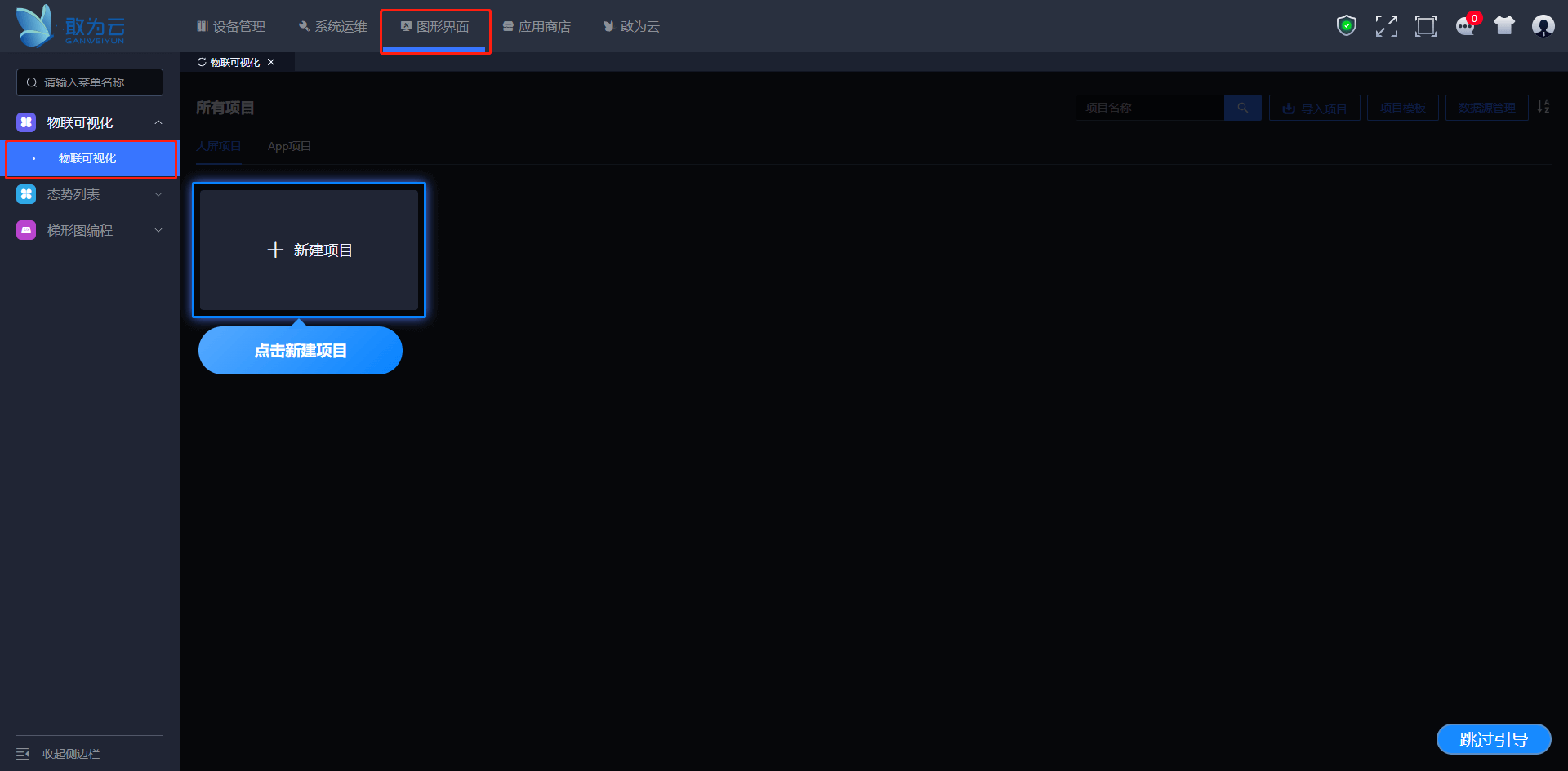 点击顶部图形界面,左侧会增加当前已安装的可视化的菜单。