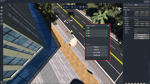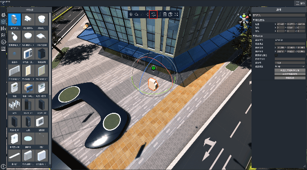 - 设备部署和数据绑定。将设置好的设备拖入场景中,然后设置设备名称、设备号、设备视角(这个视角可以应用到模板设备中,重新拖出来的设备将继承这个视角)。编辑器工具栏可以对该设备进行聚焦、撤销、重做、平移、旋转、缩放、删除和复制。