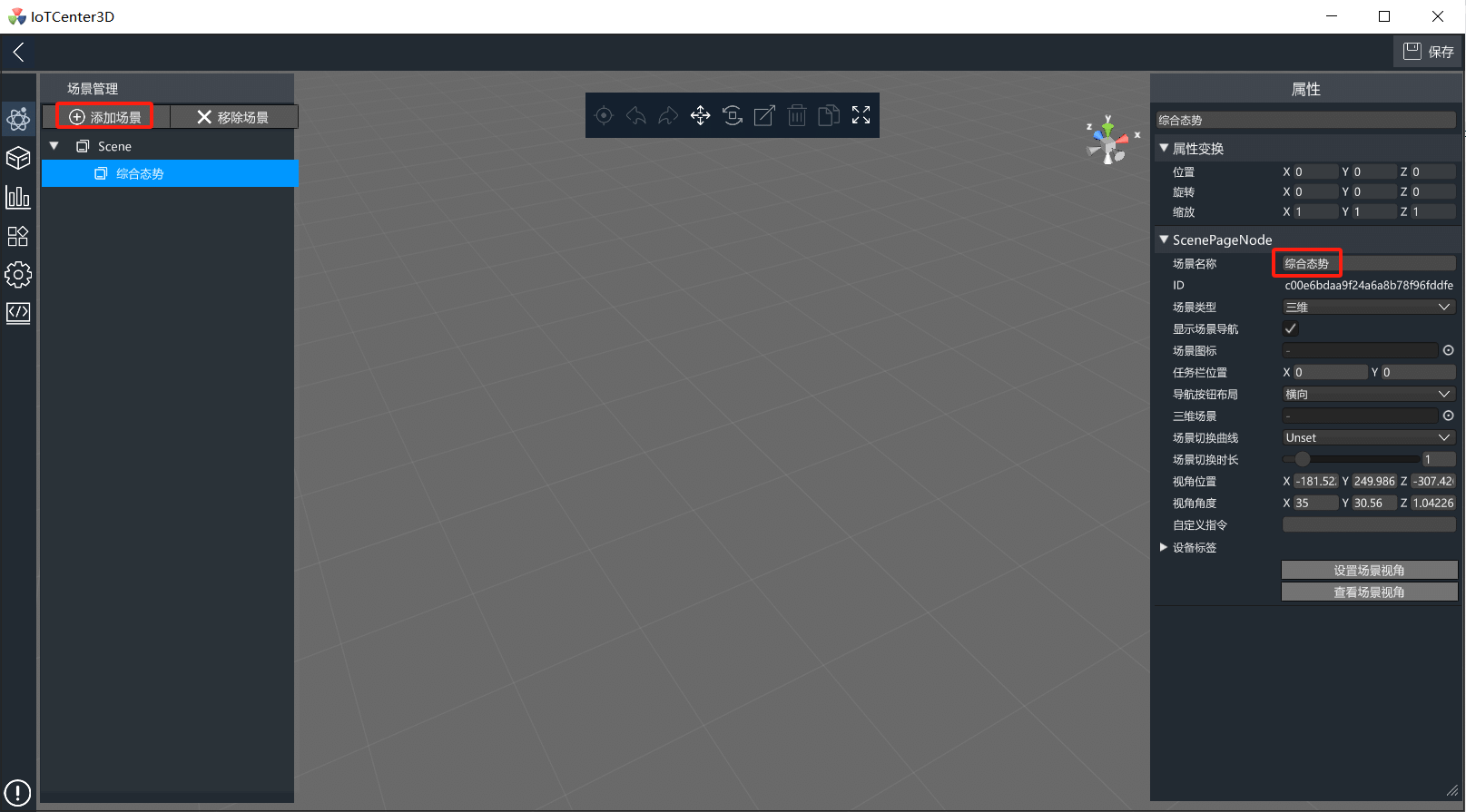 点击界面右下角按钮进入编辑器,选择左侧菜单栏场景按钮进入场景管理,选择Scene点击添加场景。可以对场景进行删除和添加,选择一级场景可以创建二级场景,最多可以创建二级场景。