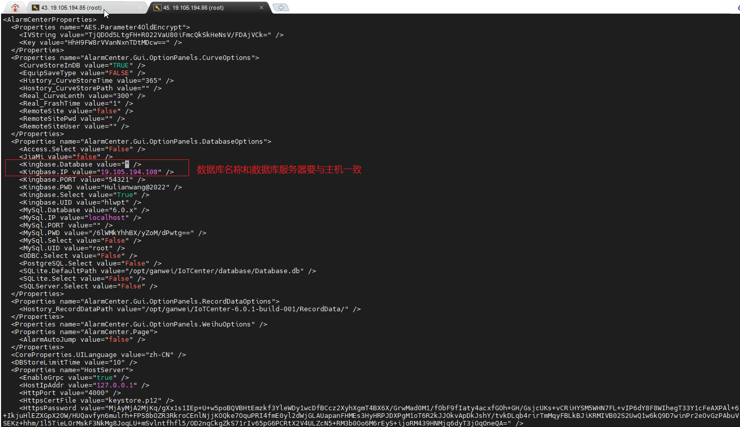 vi /opt/ganwei/IoTCenter/data/AlarmCenter/AlarmCenterProperties.xml