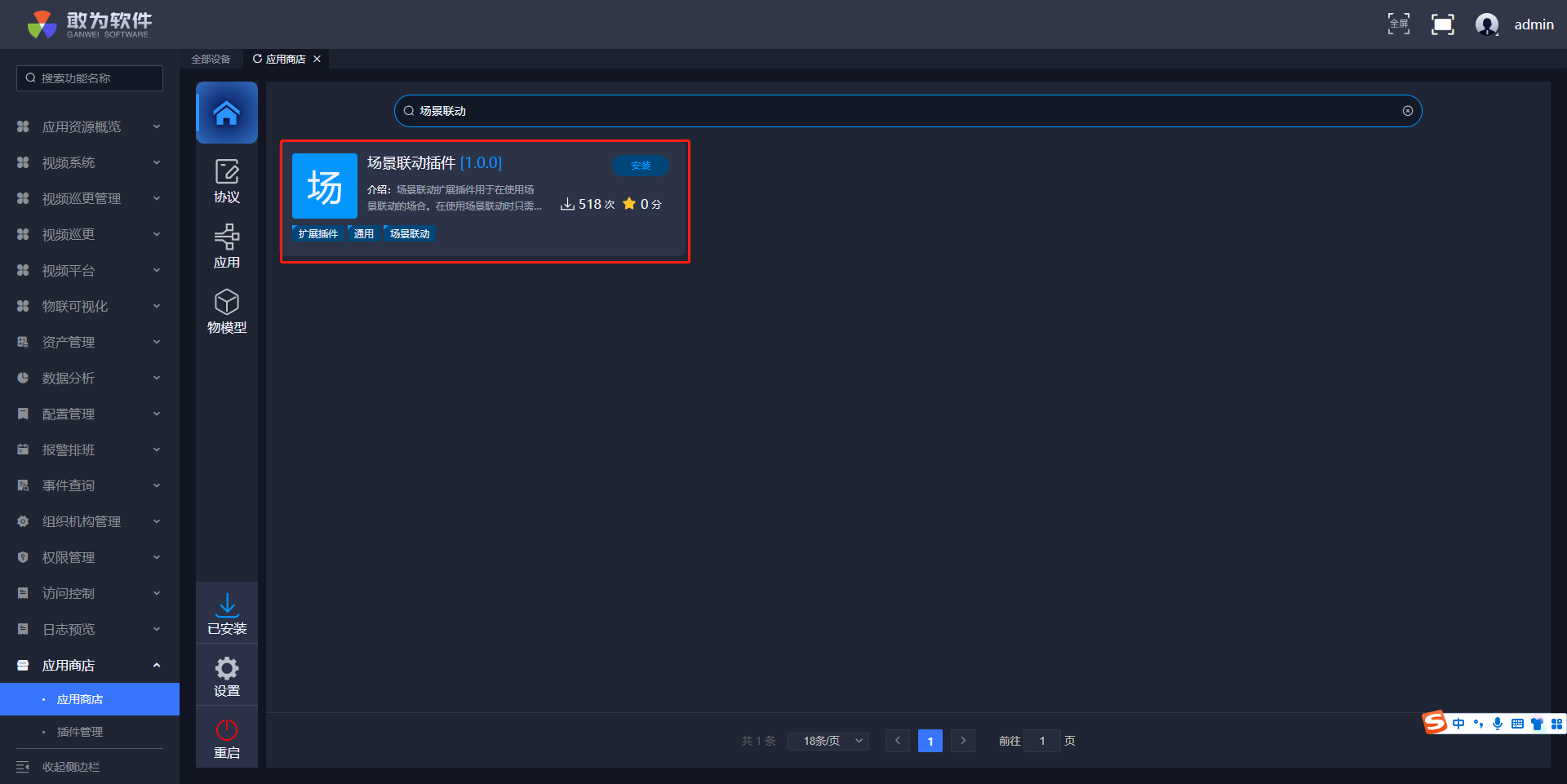 A: 场景联动功能需要场景联动扩展插件的支持,可以在应用商店中安装场景联动扩展插件,如下图所示: