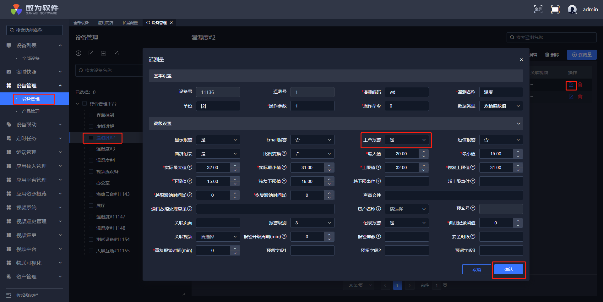 设备测点的工单报警字段应选择是。
