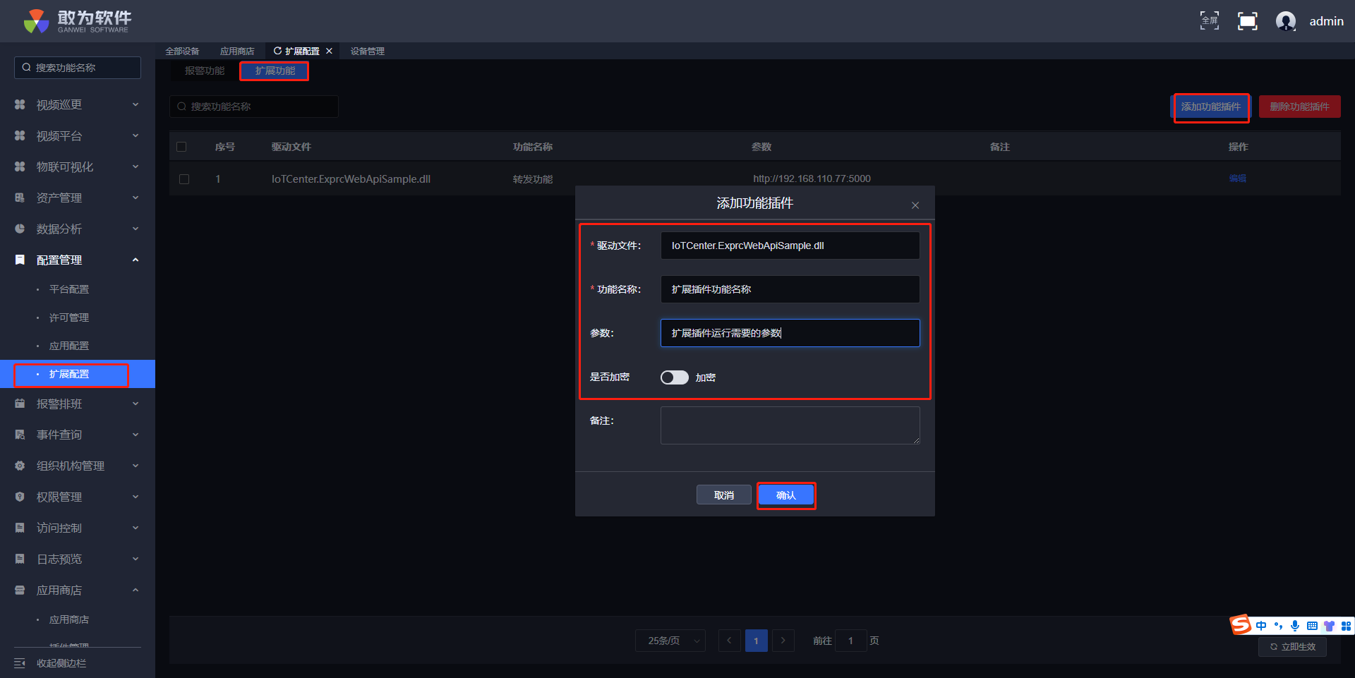 \IoTCenter\dll目录中。重启服务后,扩展插件被自动调用执行。