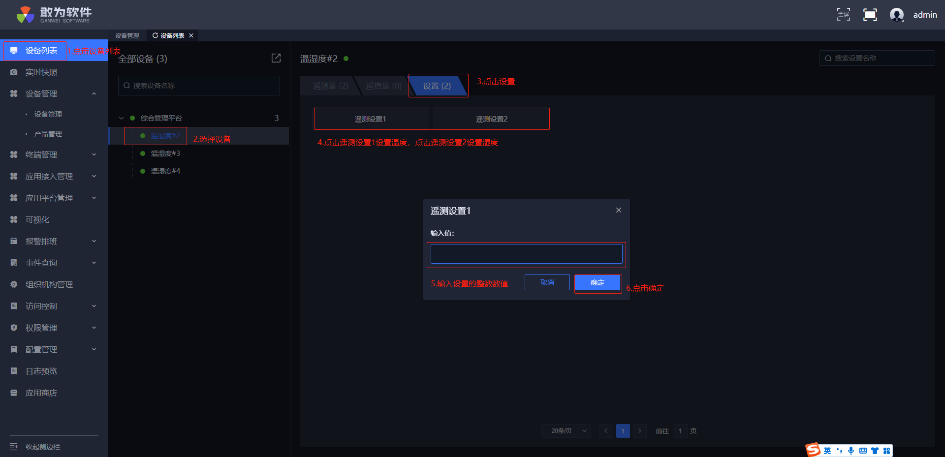 2. 点击左侧菜单栏设备管理->设备管理进行设备的添加。
