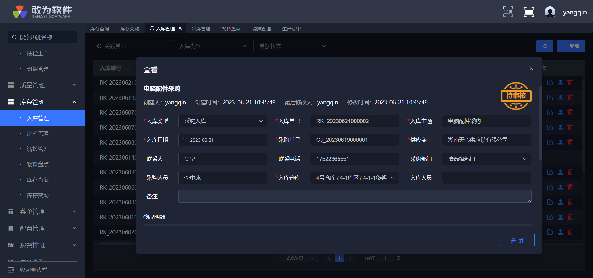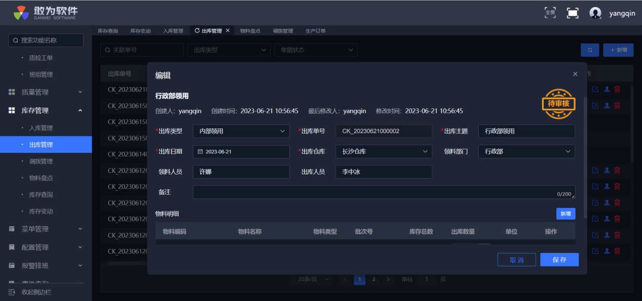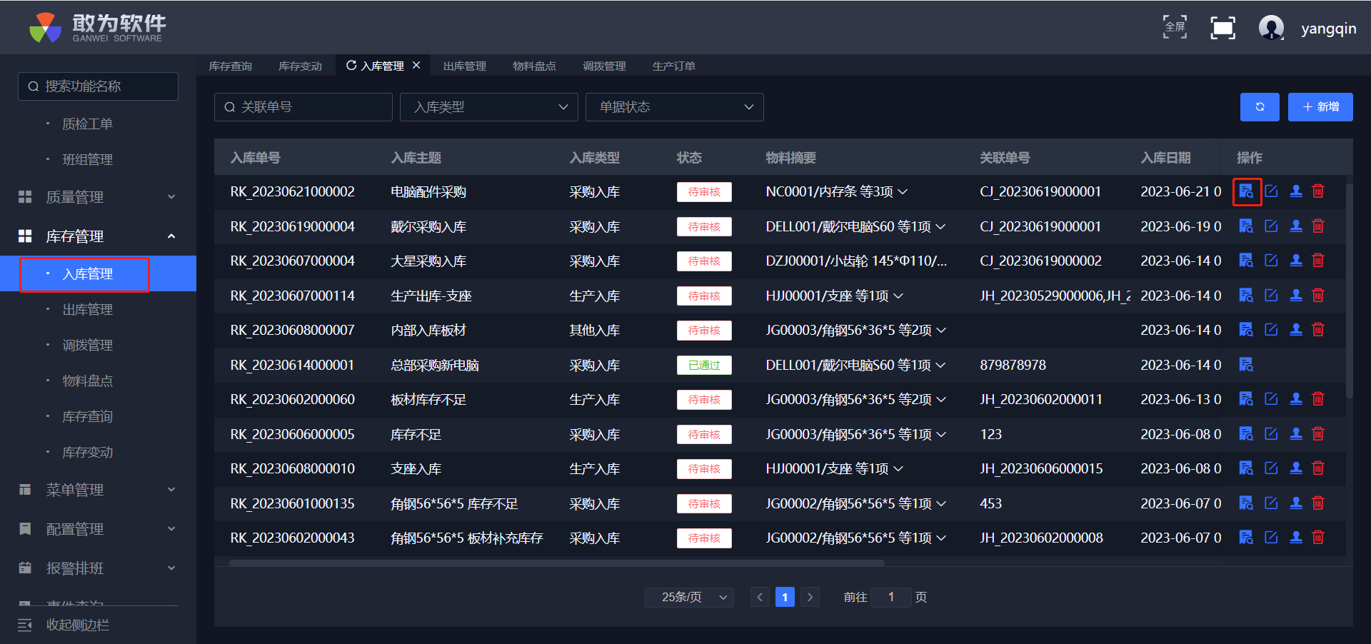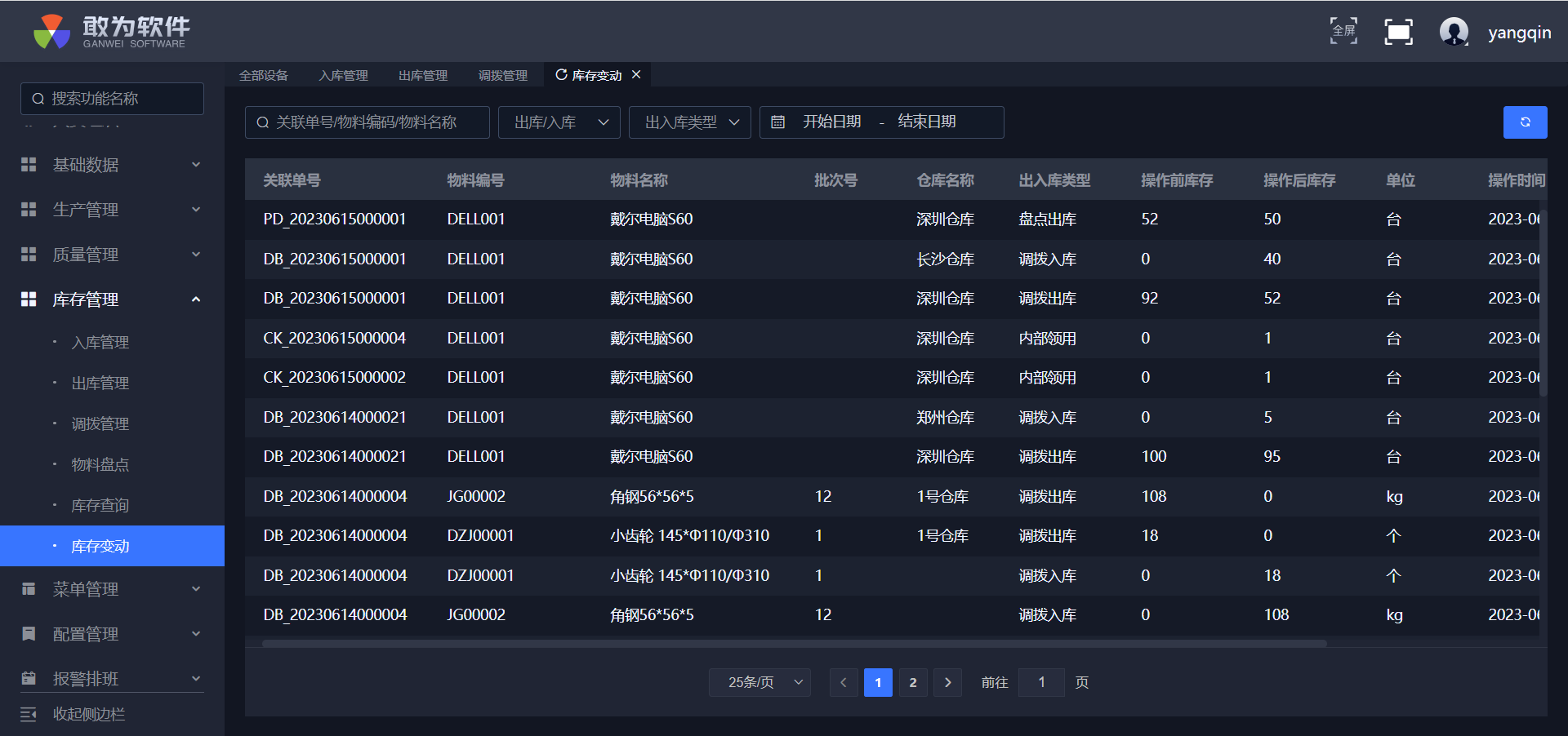 库存变动是指出物料、产品出入库时,库存变动产生的单据。