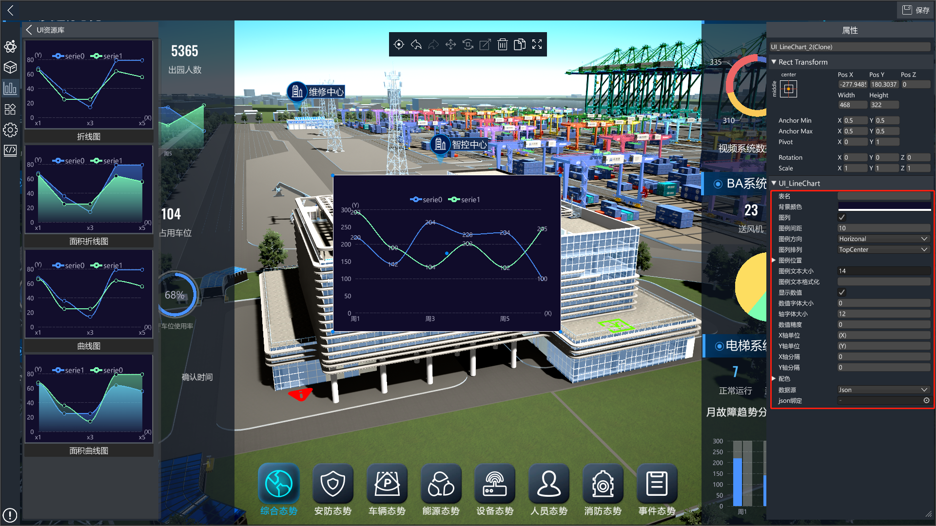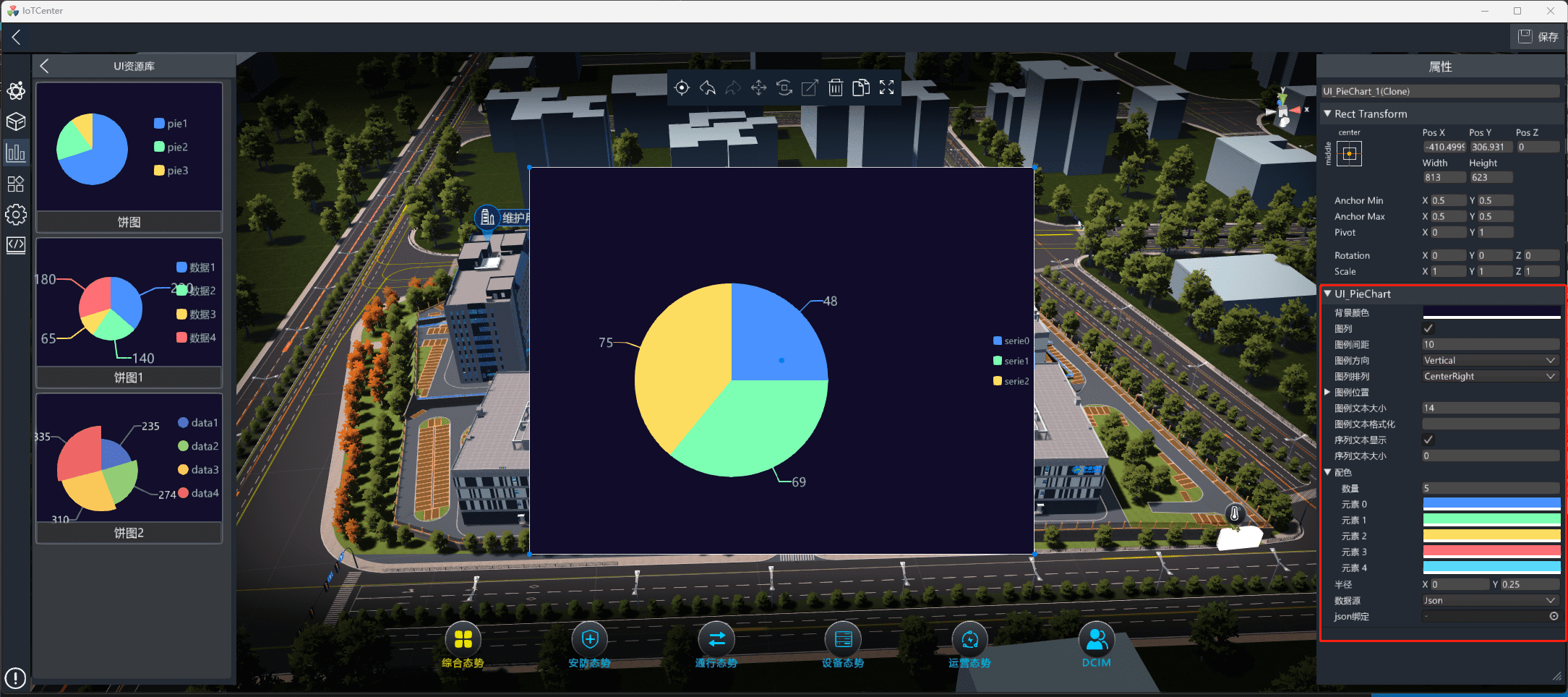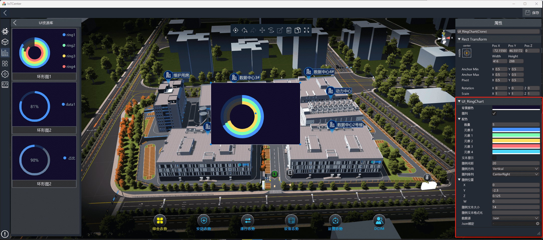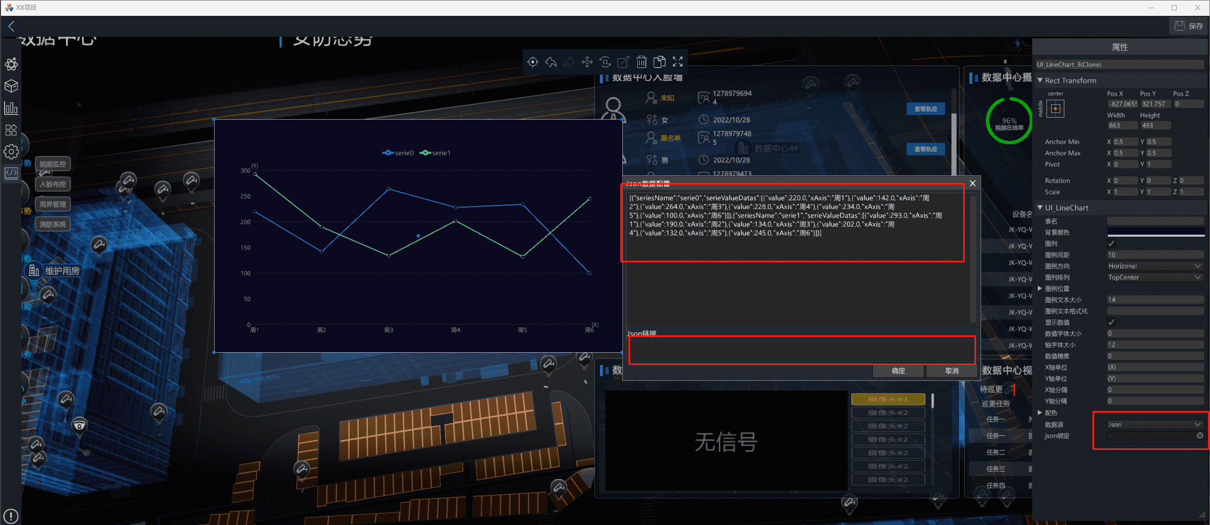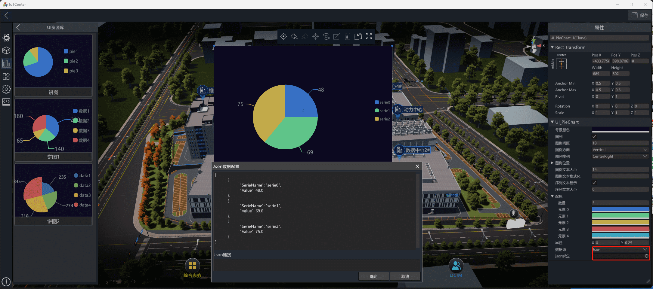 数据源:支持json/链接、IoTCenter实时数据显示。